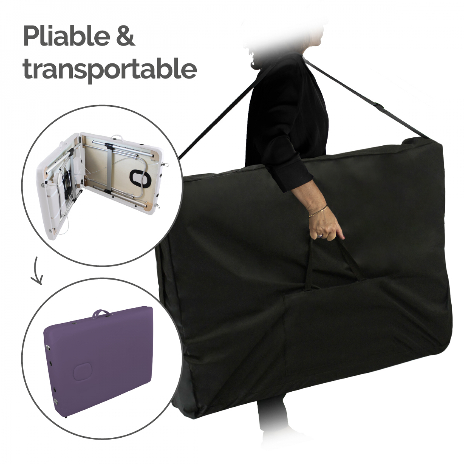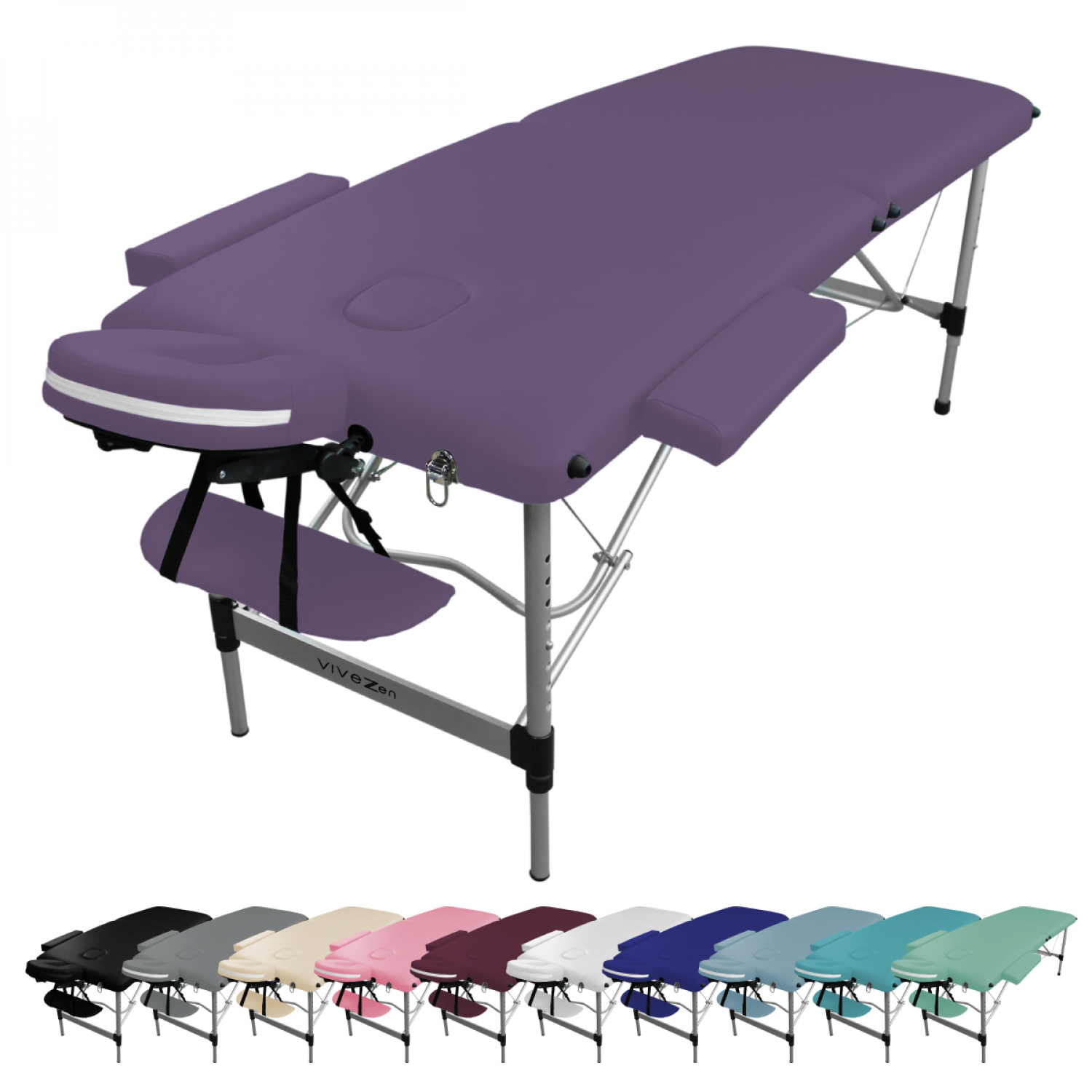 Vivezen - Table de massage pliante 2 zones en aluminium + Accessoires et housse de transport - Violet