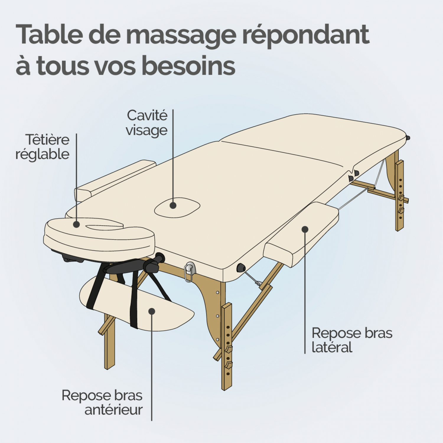 | Libellé | Vivezen - Table de massage pliante 2 zones en bois avec panneau Reiki+Accessoires et housse de transport - Beige |