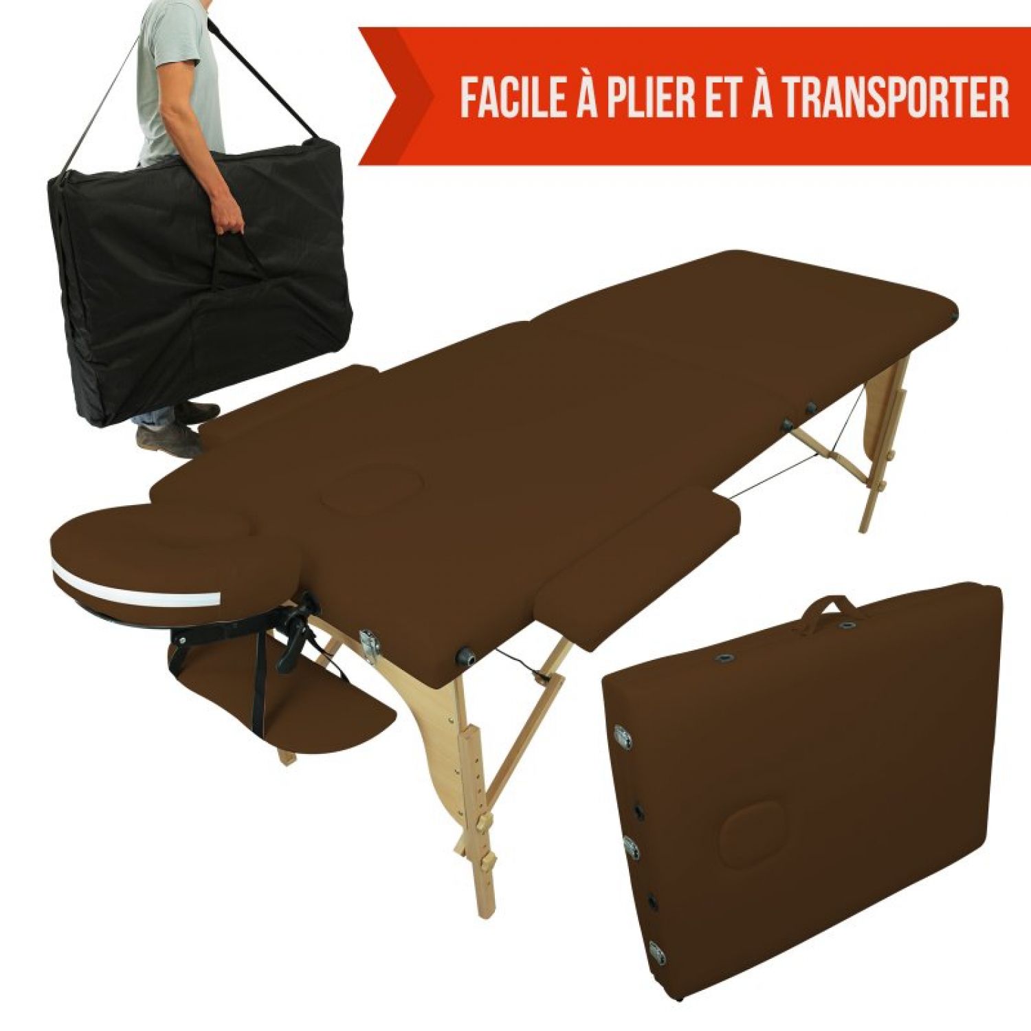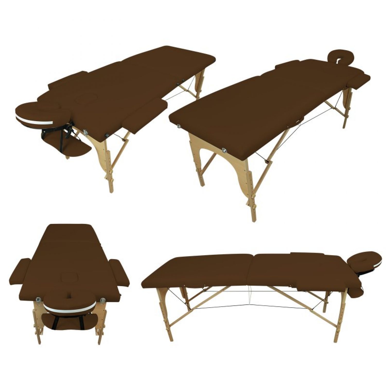 | Libellé | Vivezen - Table de massage pliante 2 zones en bois avec panneau Reiki + Accessoires et housse de transport - Marron foncé |