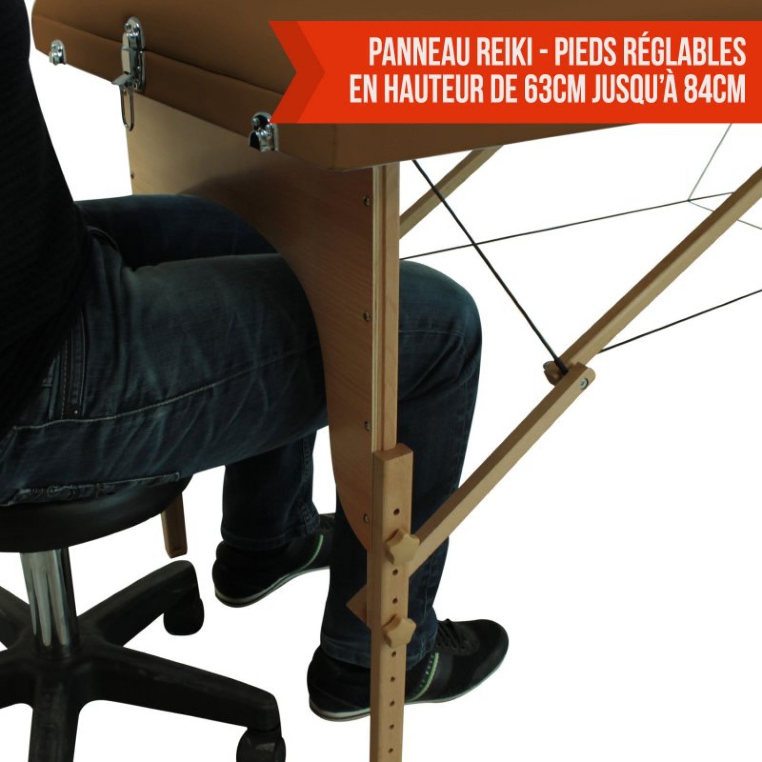 Vivezen - Table de massage pliante 2 zones en bois avec panneau Reiki + Accessoires et housse de transpor