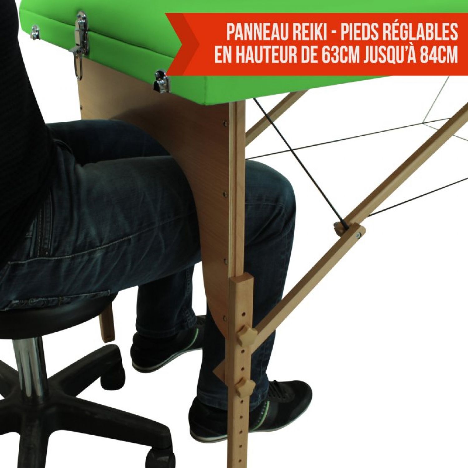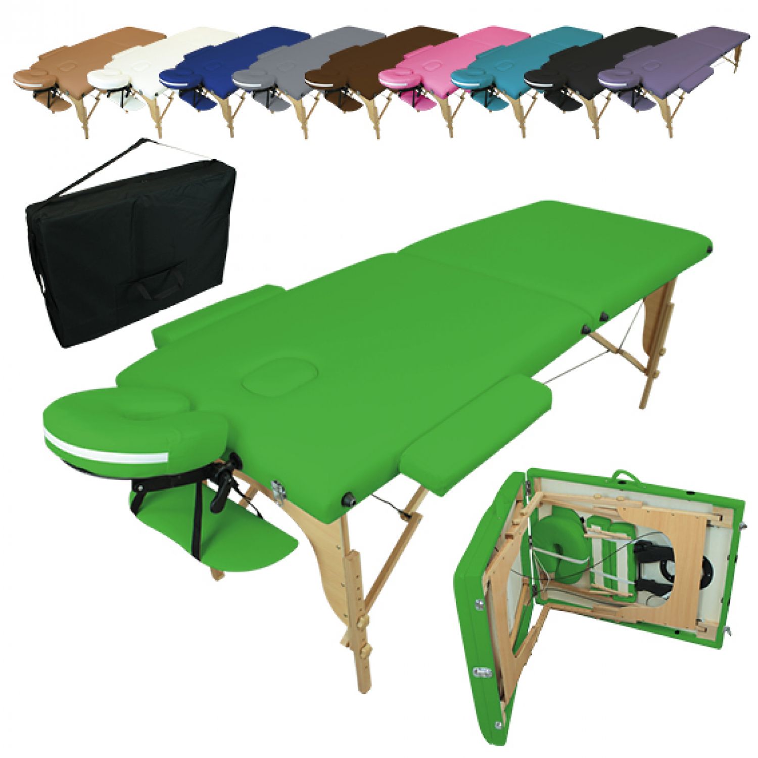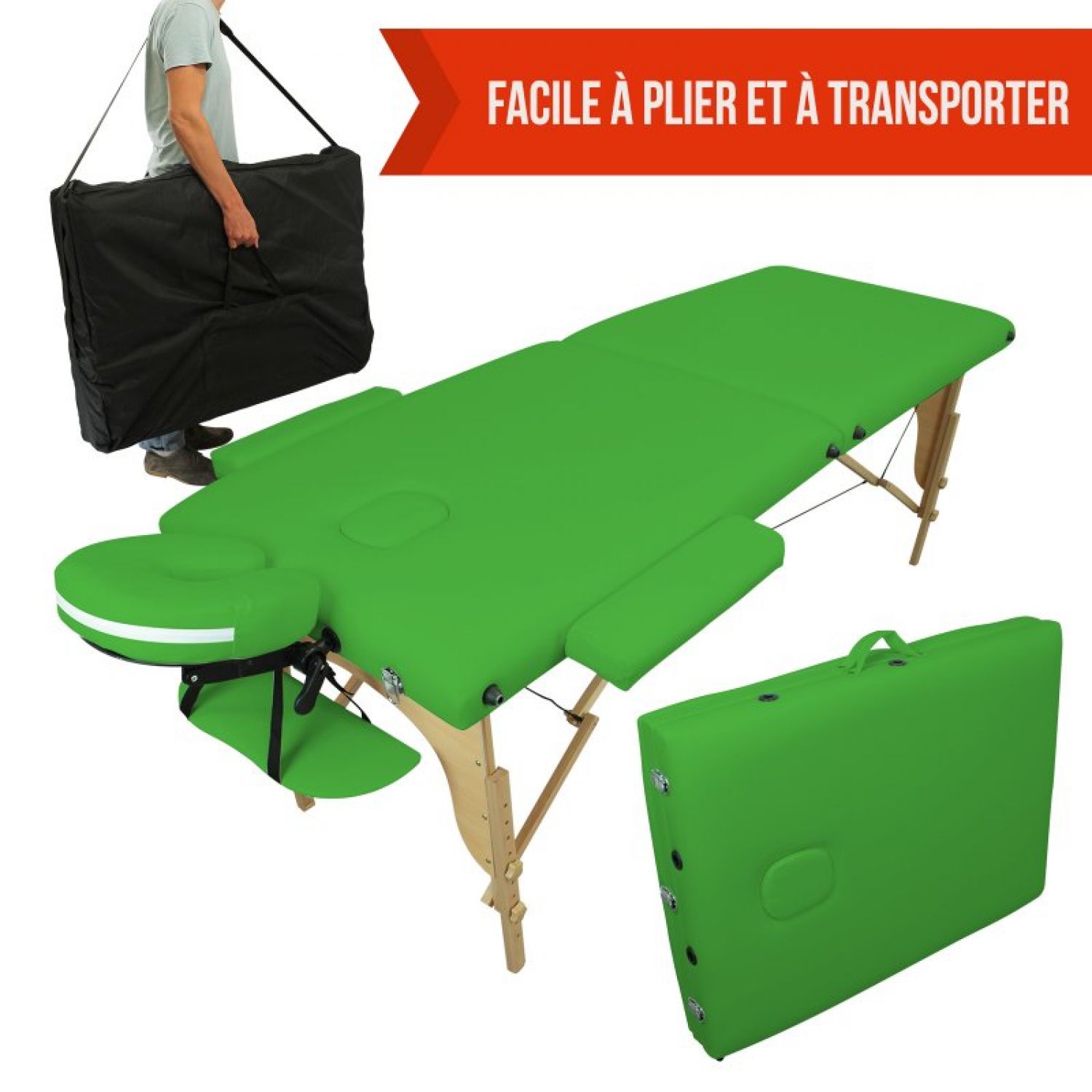 | Libellé | Vivezen - Table de massage pliante 2 zones en bois avec panneau Reiki + Accessoires et housse de transport - Vert |