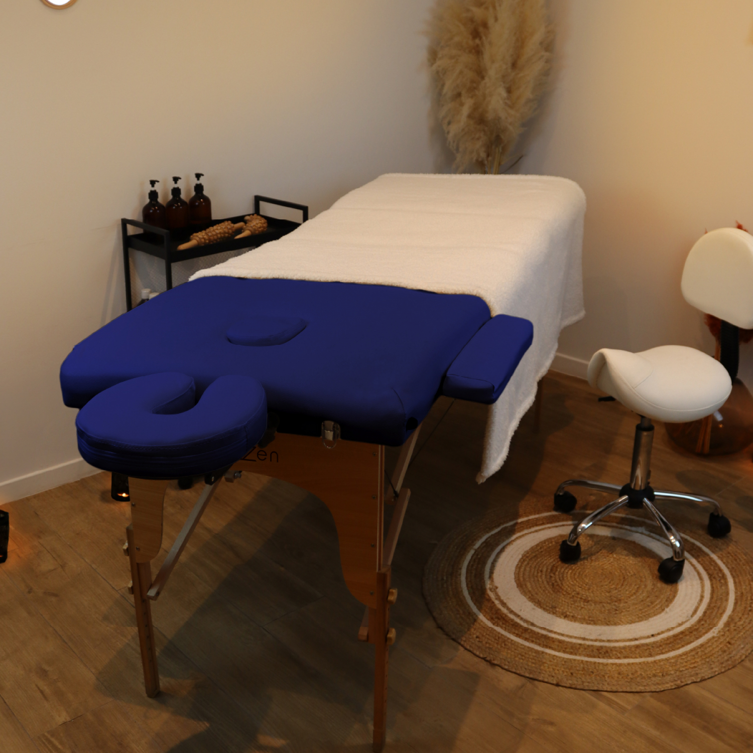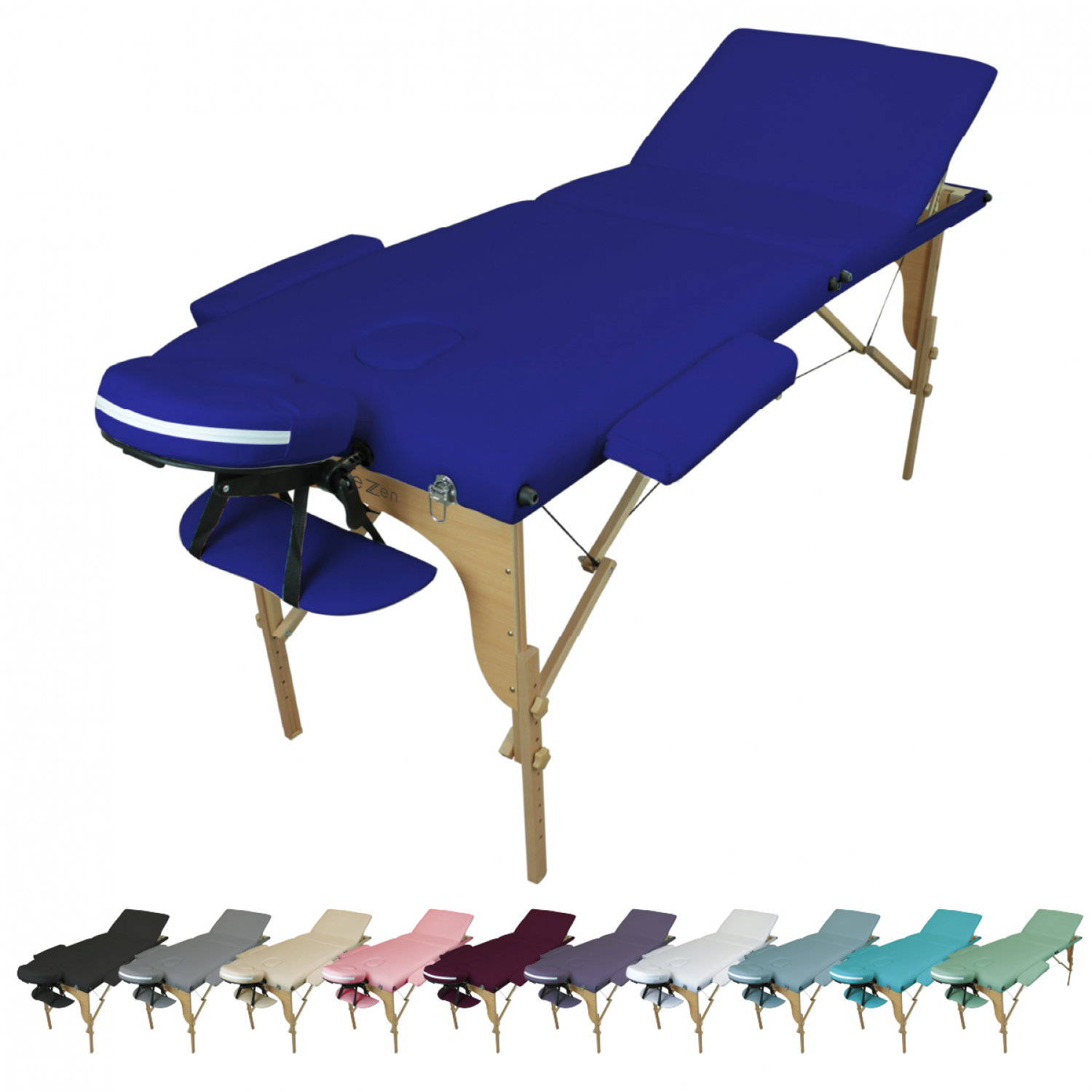 | Libellé | Vivezen - Table de massage pliante 3 zones en bois avec panneau Reiki + Accessoires et housse de transport - Bleu azur |