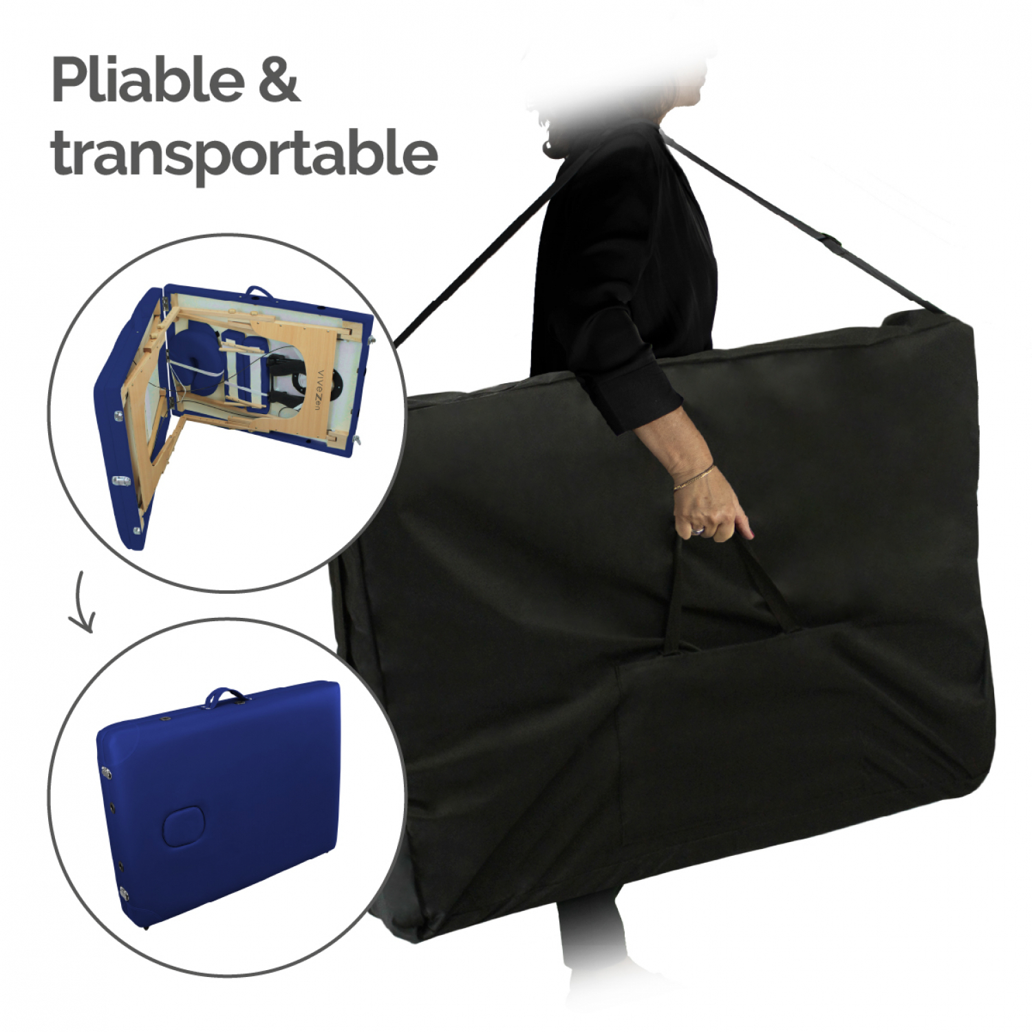 Vivezen - Table de massage pliante 3 zones en bois avec panneau Reiki + Accessoires et housse de transpor