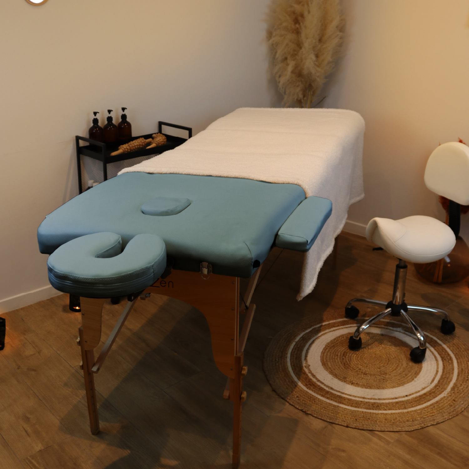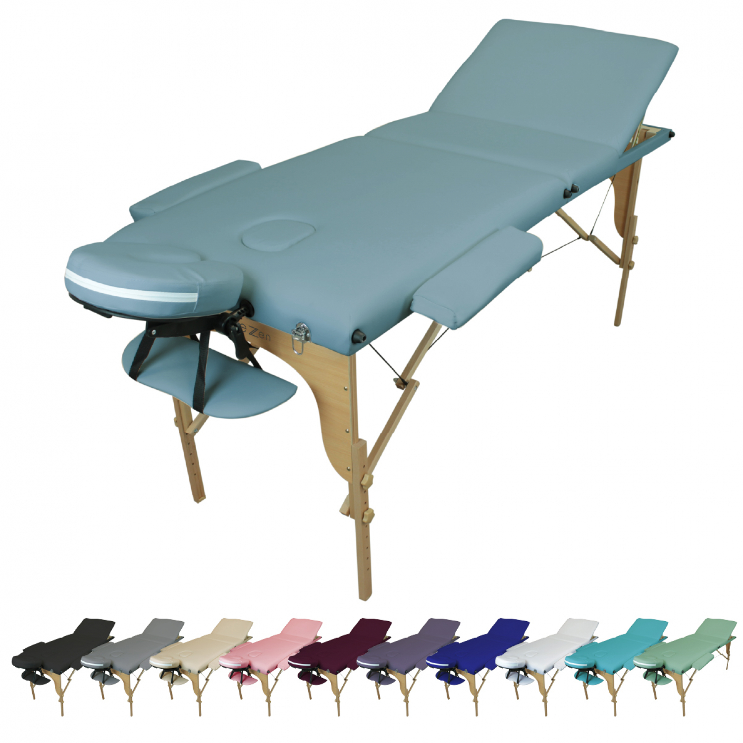 | Libellé | Vivezen - Table de massage pliante 3 zones en bois avec panneau Reiki + Accessoires et housse de transport - Bleu pastel |