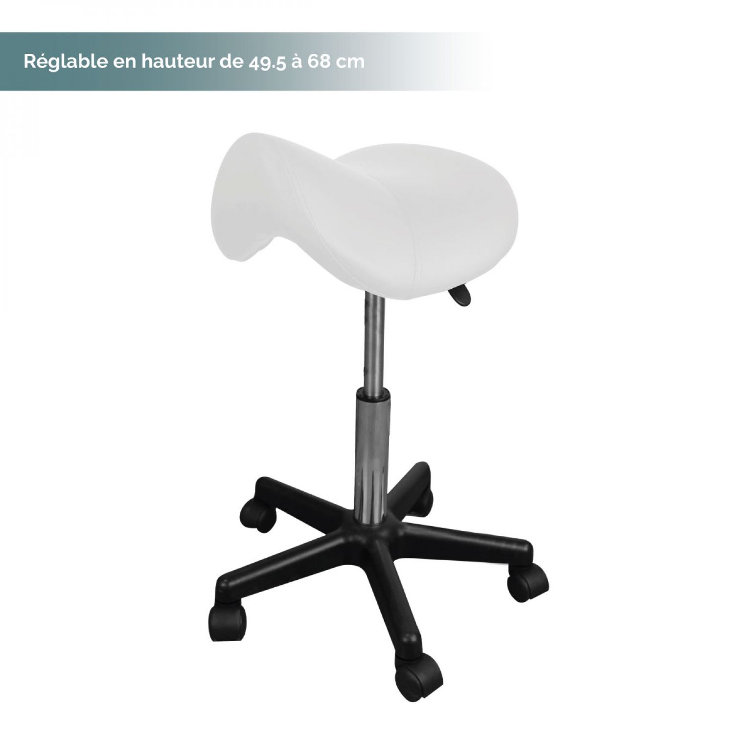 | Libellé | Vivezen - Tabouret ergonomique, selle de cheval à roulettes réglable en hauteur de 49.5 à 68 cm et pivotable à 360° - Blanc |
