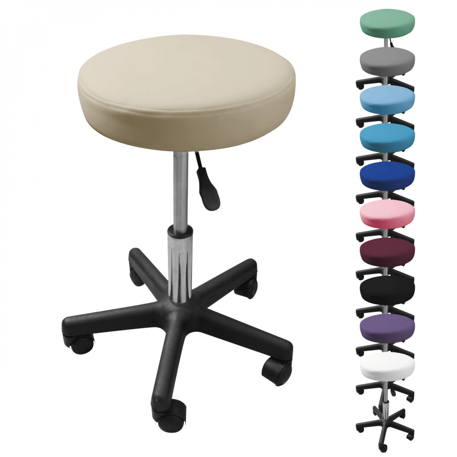 | Libellé | Vivezen - Tabouret rond à roulettes réglable en hauteur de 43.5 à 60.5 cm et pivotable à 360° - Beige |