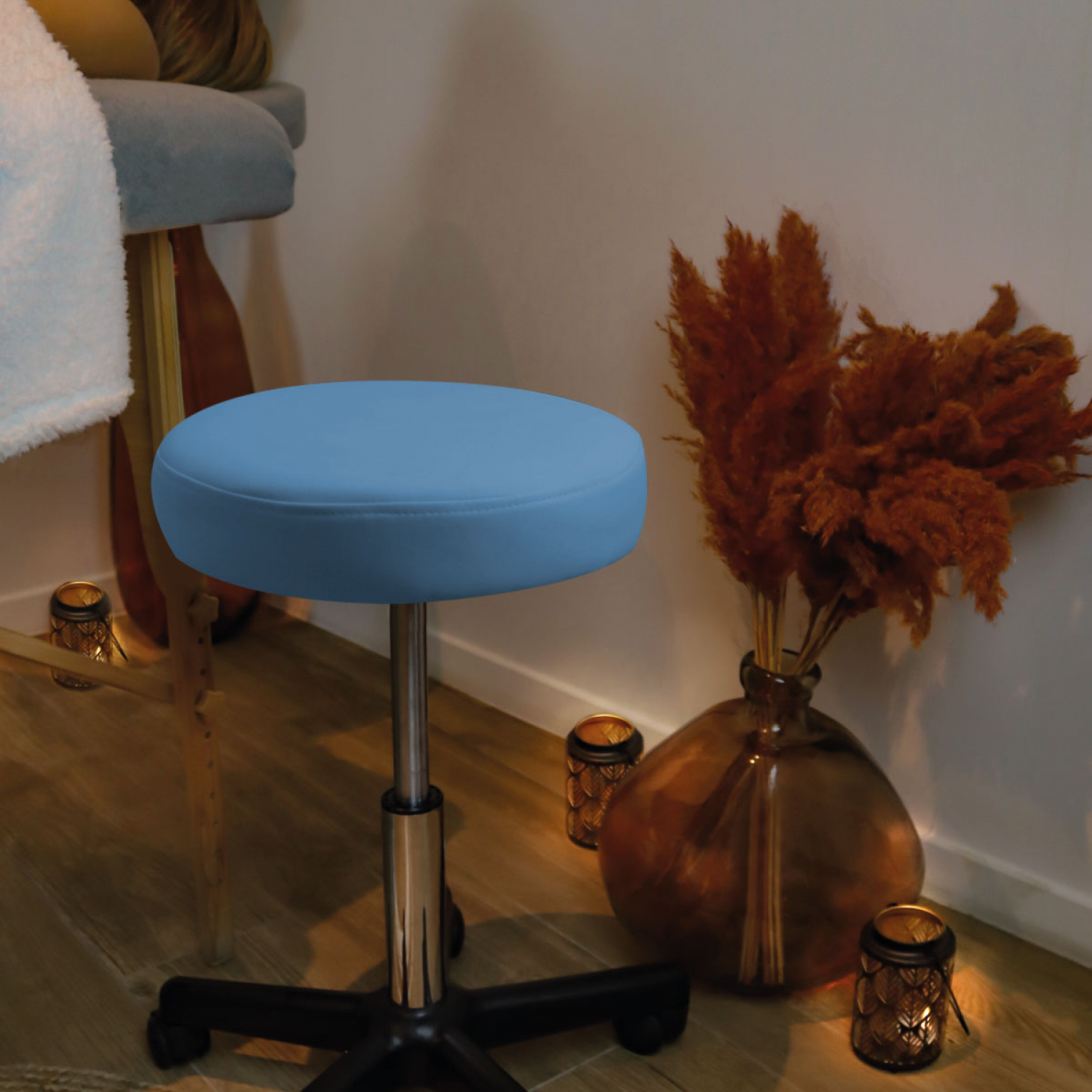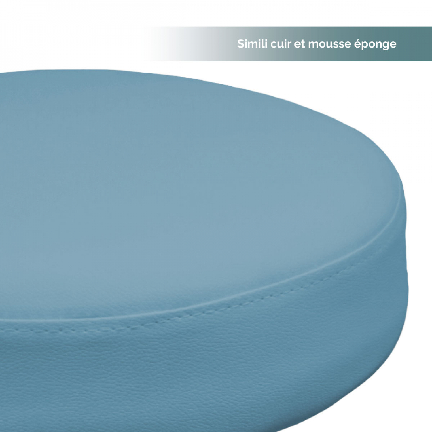 | Libellé | Vivezen - Tabouret rond à roulettes réglable en hauteur de 43.5 à 60.5 cm et pivotable à 360° - Bleu pastel |