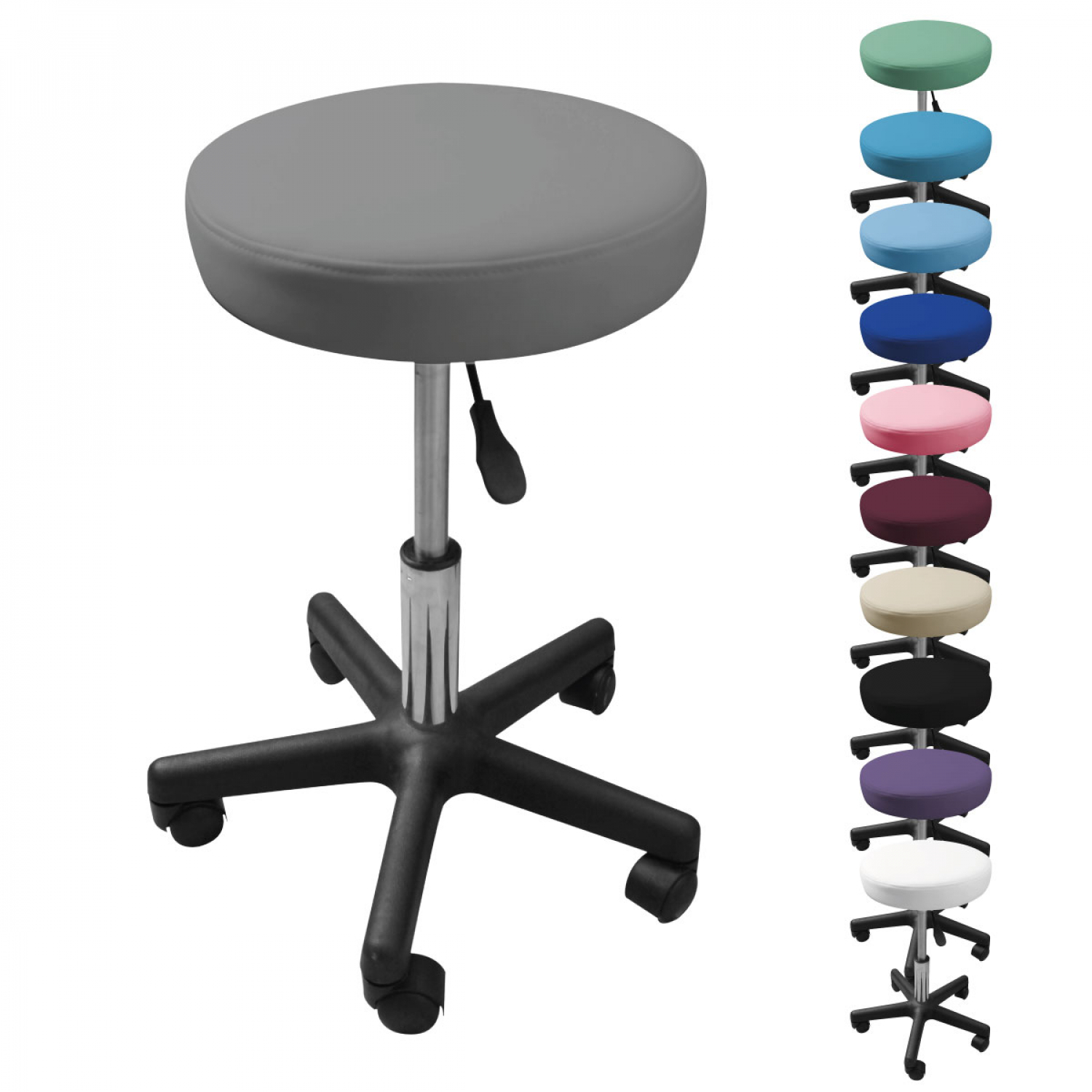 Vivezen - Tabouret rond à roulettes réglable en hauteur de 43.5 à 60.5 cm et pivotable à 360° - Gris