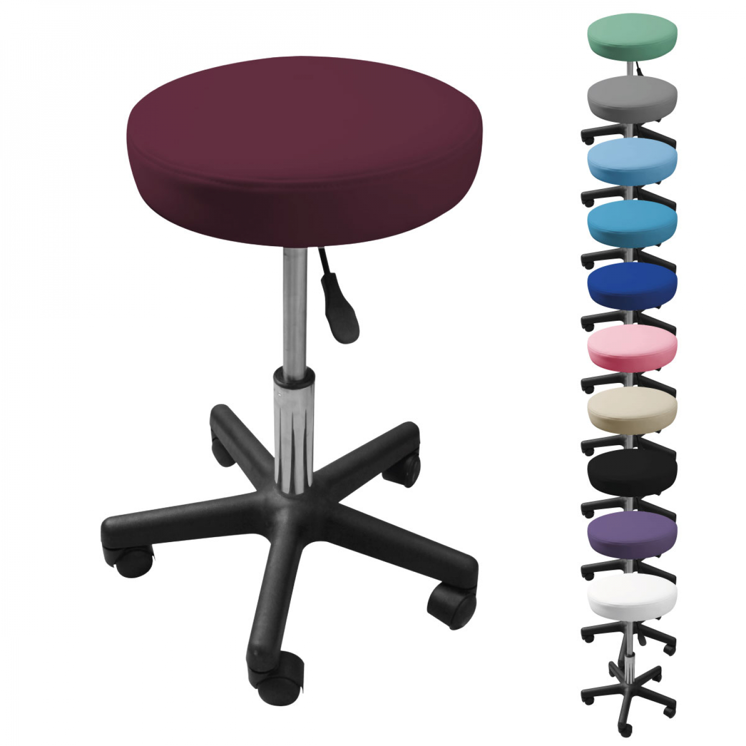 Vivezen - Tabouret rond à roulettes réglable en hauteur de 43.5 à 60.5 cm et pivotable à 360° - Prune