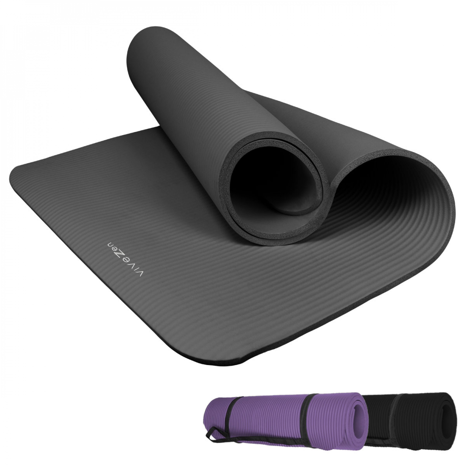 Vivezen - Tapis de yoga, de gym, d'exercices 186 x 120 x 1 cm + sangle de transport - Gris