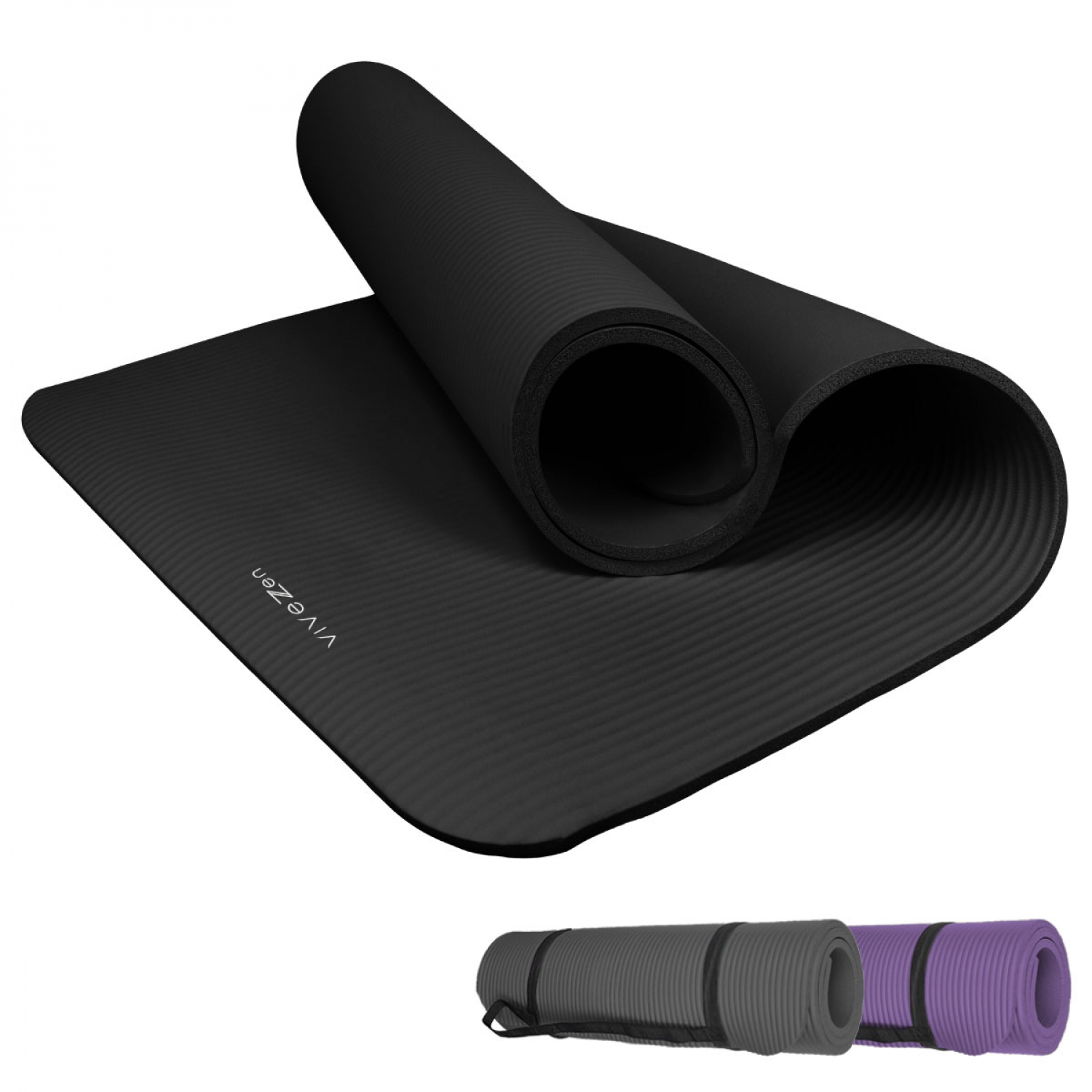 Vivezen - Tapis de yoga, de gym, d'exercices 186 x 120 x 1 cm + sangle de transport - Noir