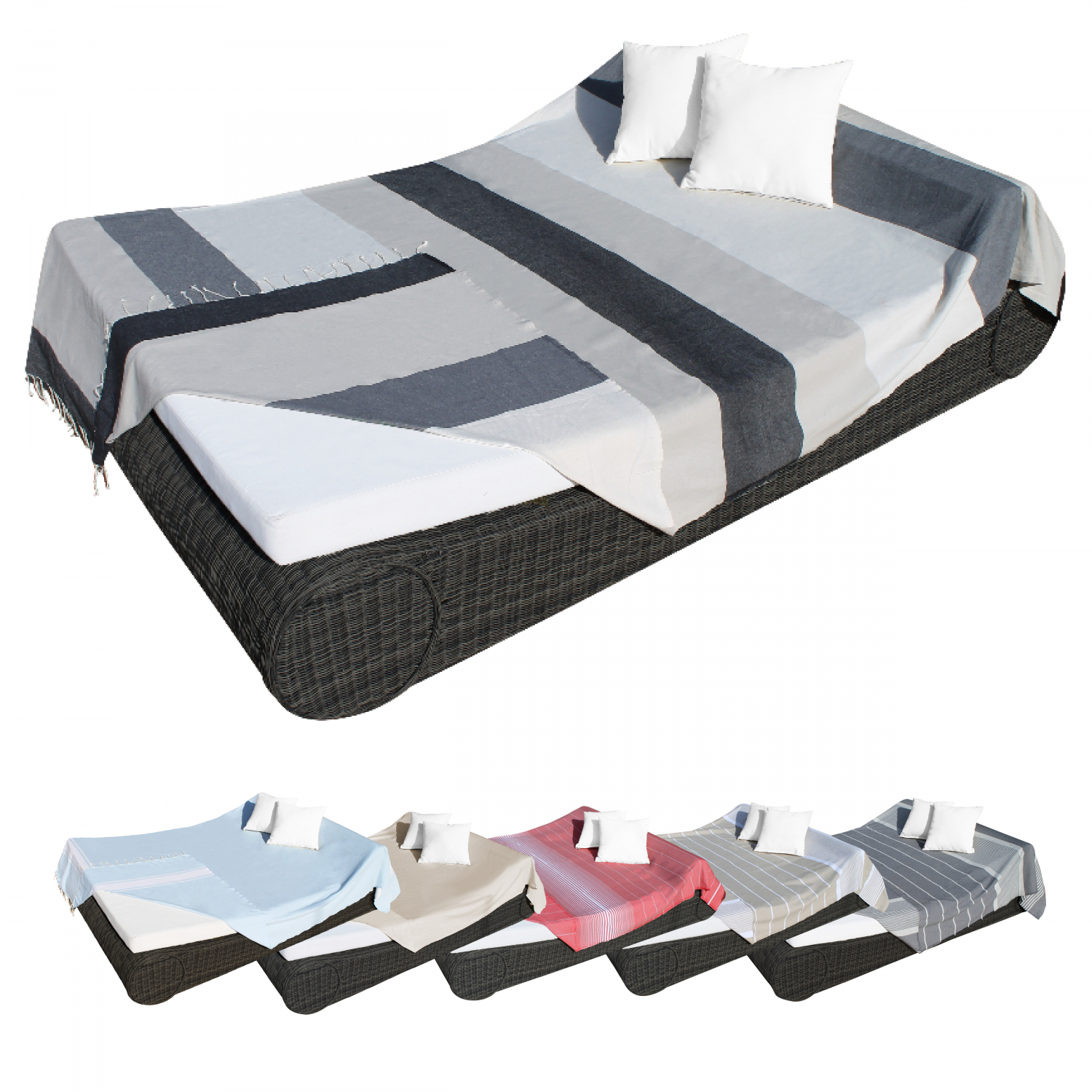 Vivezen - Véritable fouta Tunisienne XXL 2m x 3m tissage à plat 100% coton 380g