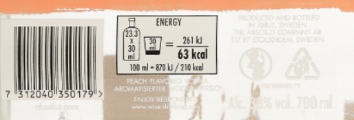 Libellé Vodka Absolut Peach, 38% vol. - 70 cl