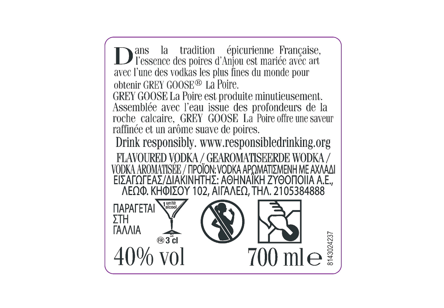 | Libellé | Vodka Grey Goose La Poire, 40 % vol. - 70 cl |