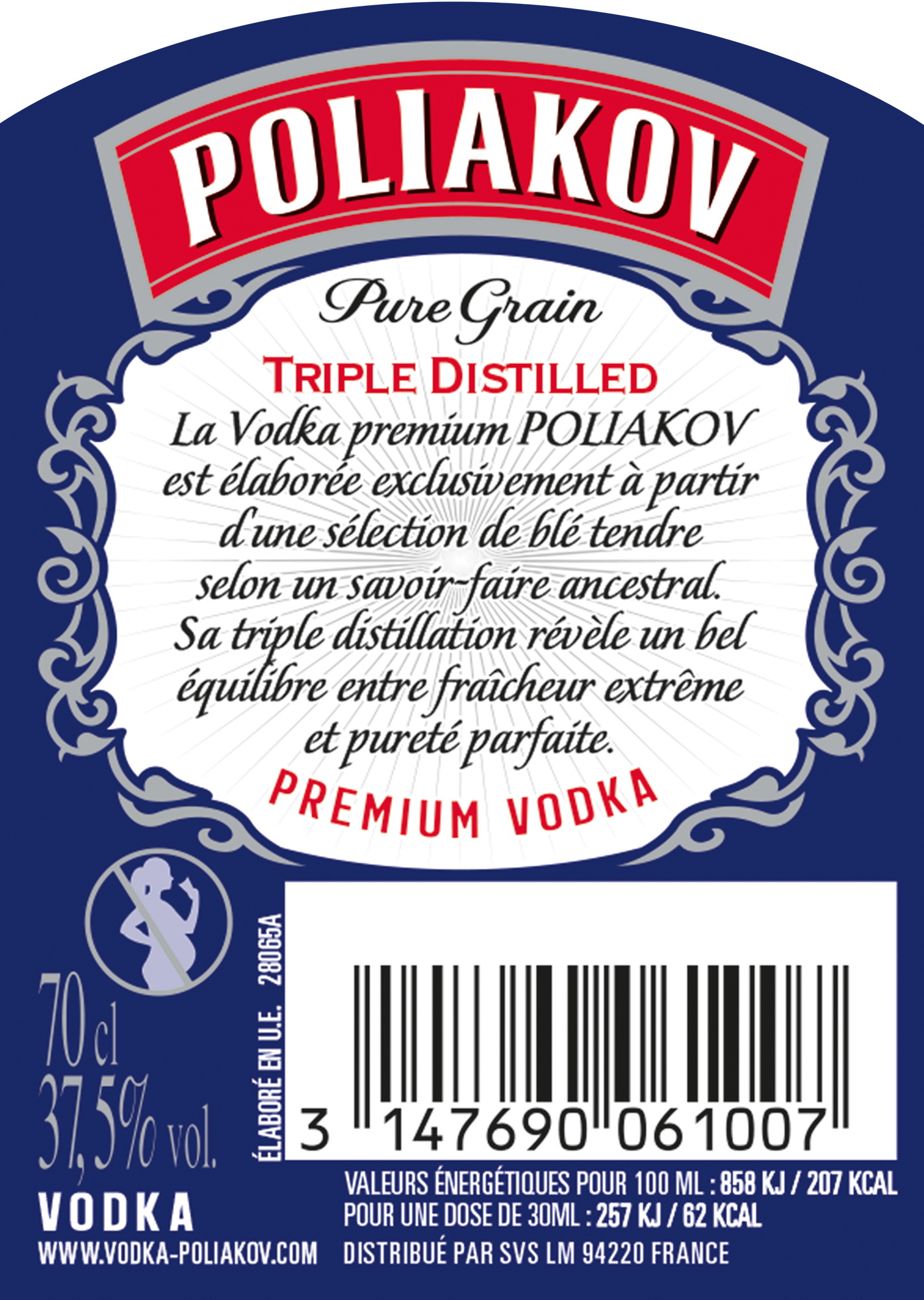 | Libellé | Vodka Poliakov Pure Grain Triple Distilled, 37,5% vol. - 70 cl |