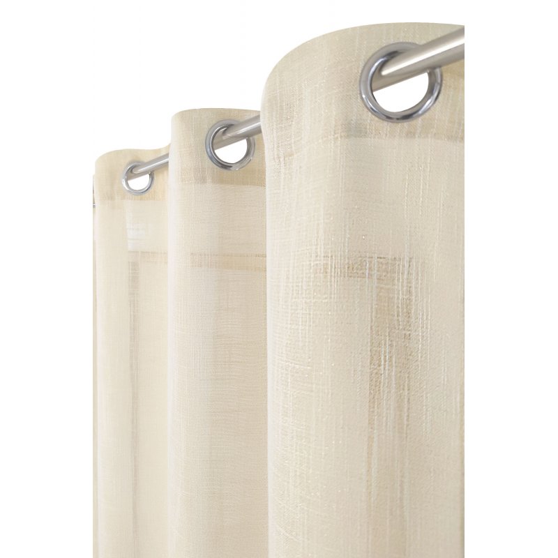 Voilage 140 x 240 cm à Oeillets Effet Lin Irisé Ecru avec Fil Lurex Doré