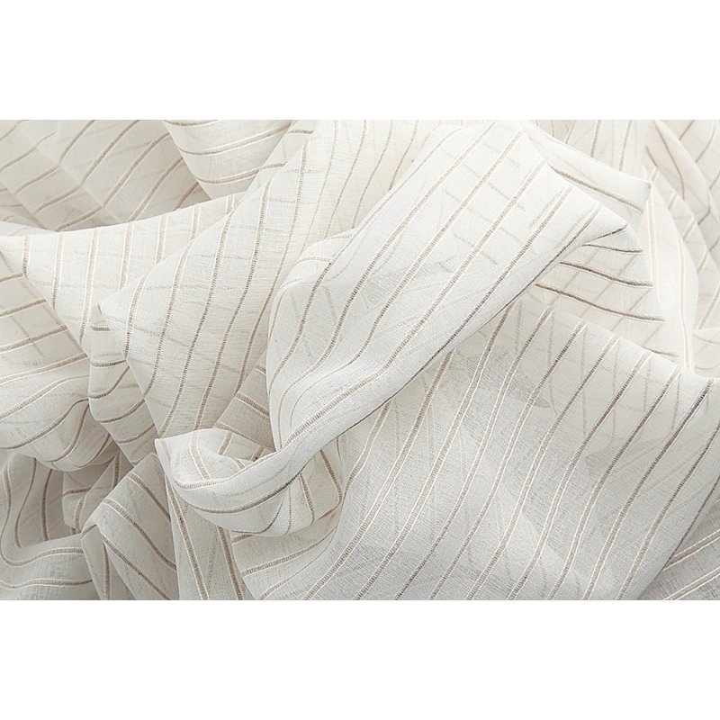 Libellé Voilage 140 x 260 cm à Oeillets Blanc Crème à Fines Rayures Verticales Dorées
