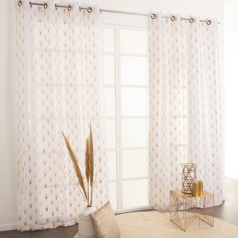 | Libellé | Voilage 140 x 260 cm à Oeillets Imprimé Art Déco Blanc Doré |