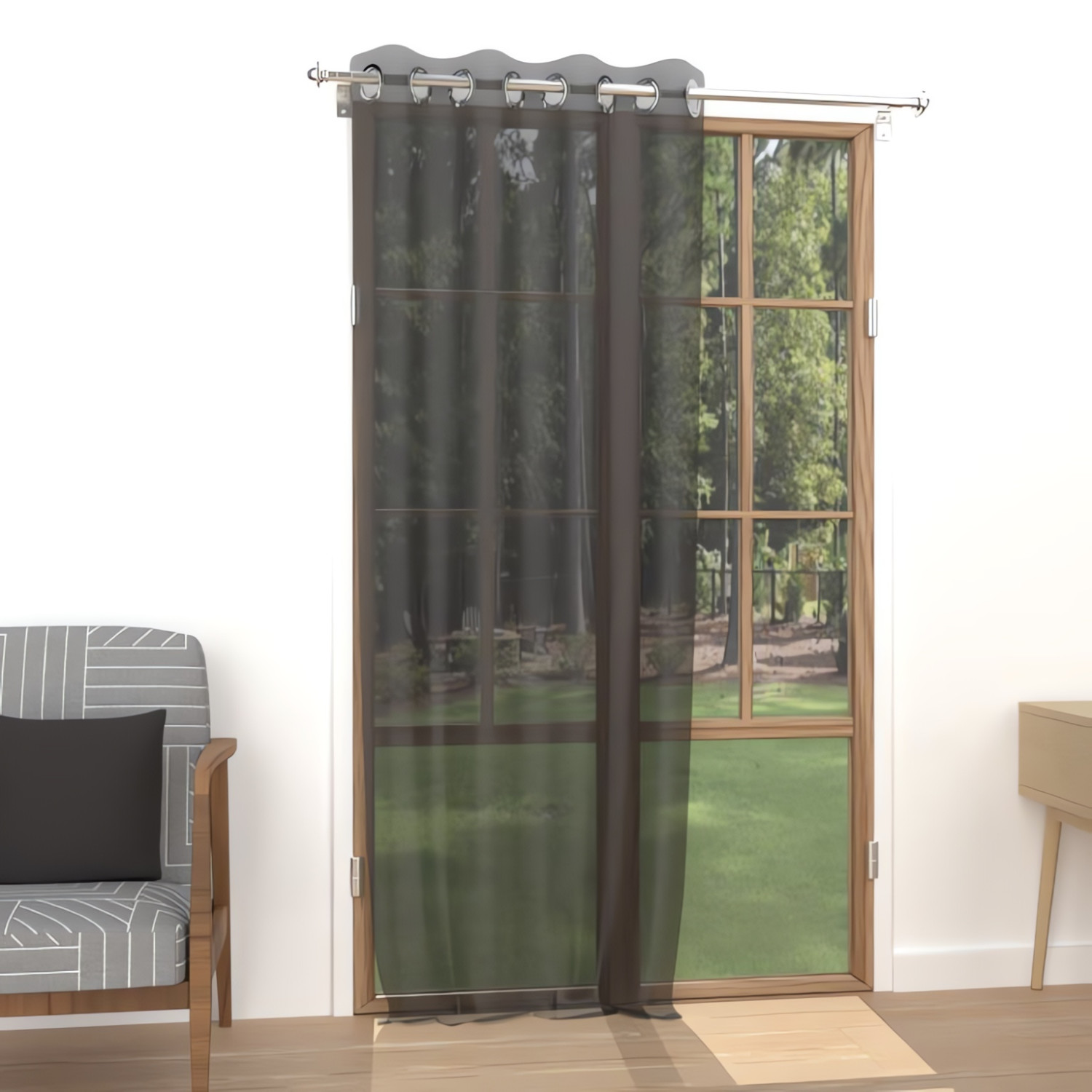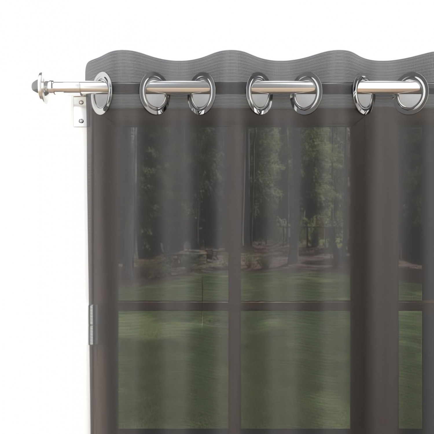 Voilage à oeillets uni, simple, et classique. Finition: 8 oeillets en métal inox (anti-rouilles). Prêt a poser. Couleur: Noir. Composition: 100% polyester. Dimensions: 135x250 cm. Entretien: - entretien facile, repassage inutile. - lavable en machine 30°c.