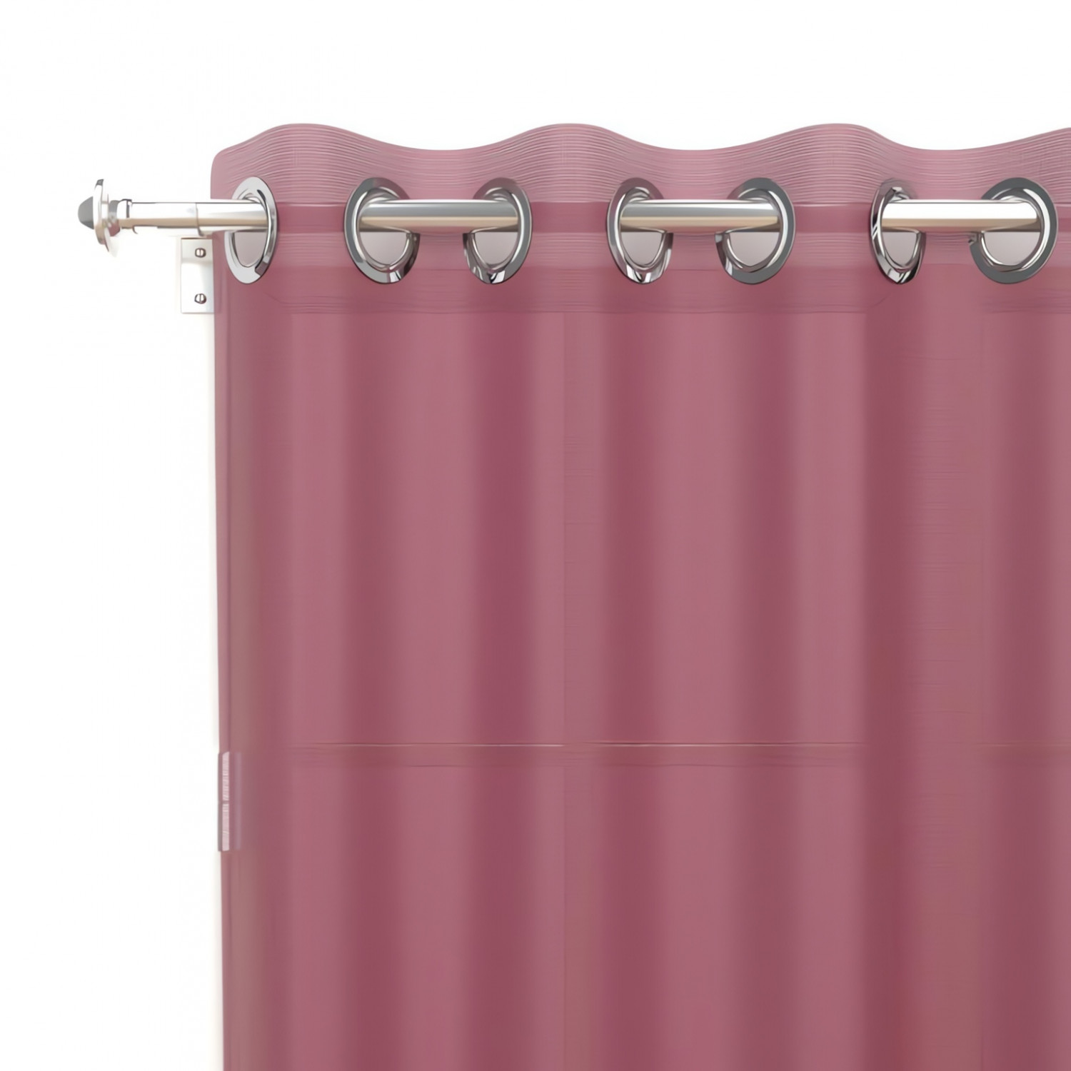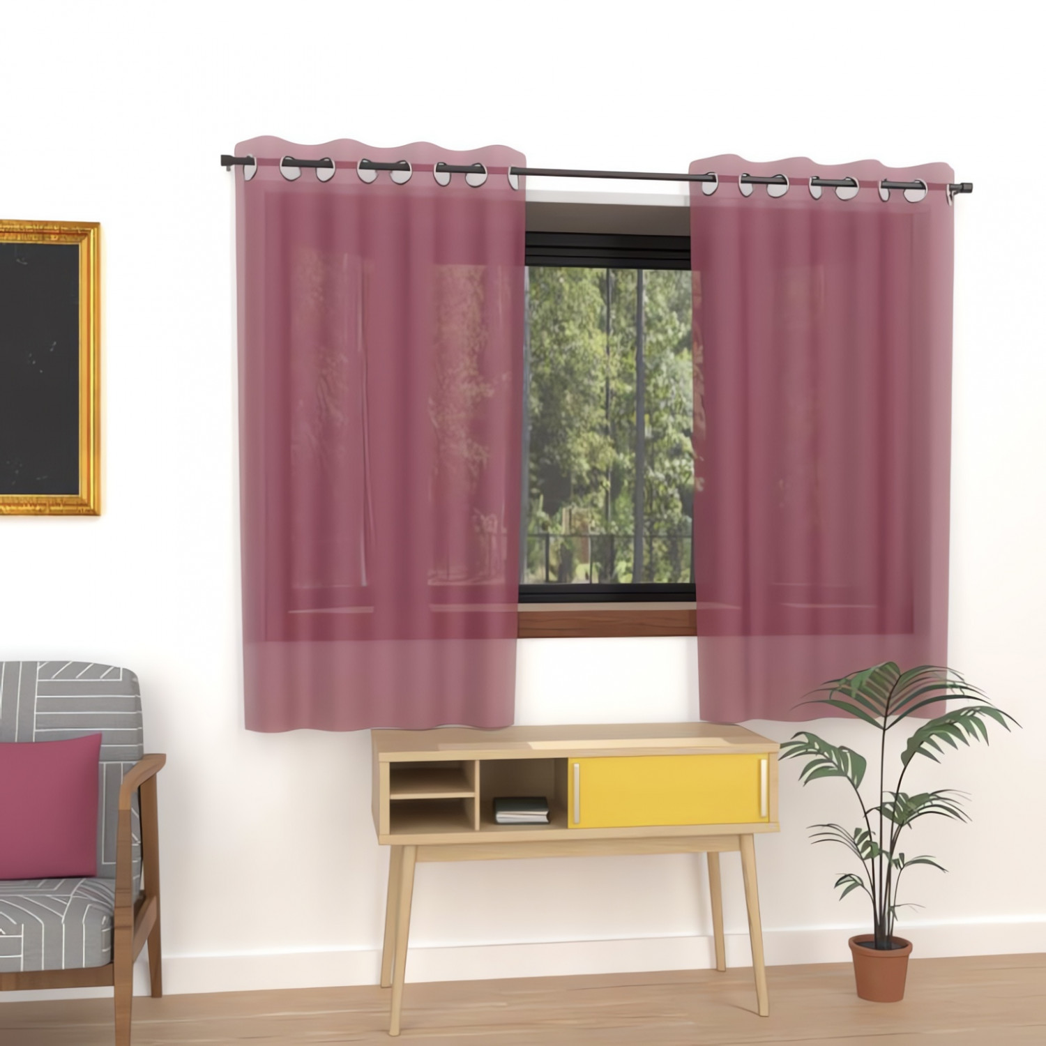 Voilage à oeillets uni, simple, et classique. Taille spéciale pour les fenêtres avec radiateur. Finition: 8 oeillets en métal inox (anti-rouilles). Prêt a poser. Couleur: Framboise. Composition: 100% polyester. Dimensions: 135x180 cm. Entretien: - entretien facile, repassage inutile. - lavable en machine 30°c.