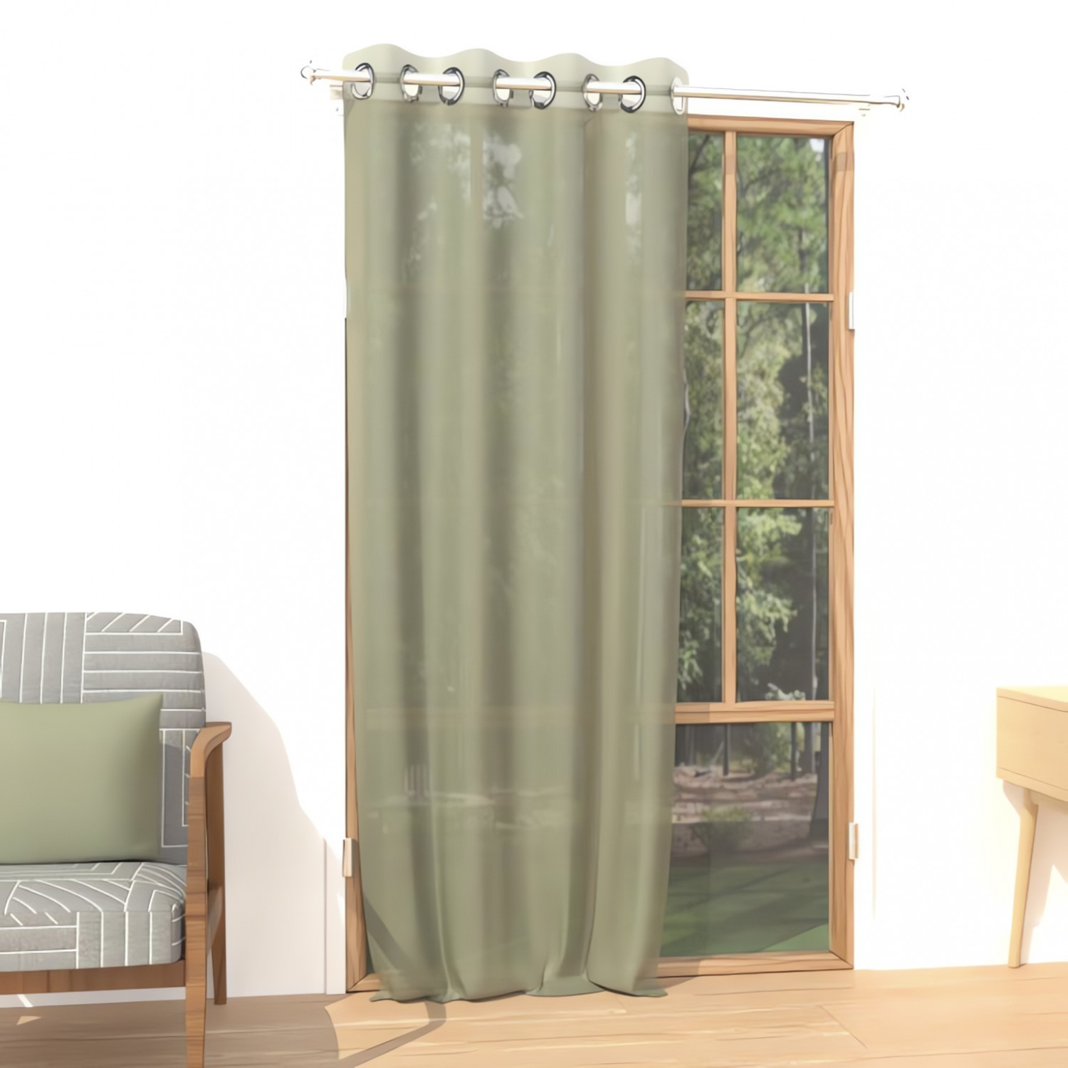 Voilage à oeillets uni, simple, et classique. Finition: 8 oeillets en métal inox (anti-rouilles). Prêt a poser. Couleur: Kaki. Composition: 100% polyester. Dimensions: 135x250 cm. Entretien: - entretien facile, repassage inutile. - lavable en machine 30°c.