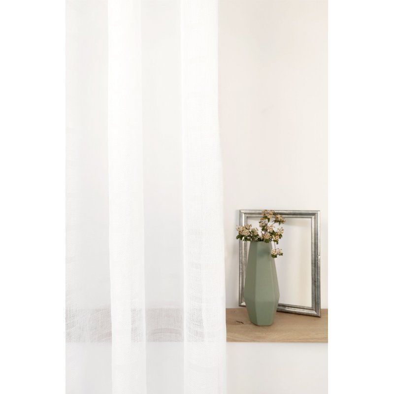 Voilage 280 x 280 cm à quatorze oeillets grande largeur grande hauteur tramé bandes rayées horizontales blanc. Créé pour les baies vitrées et fenêtres de grandes tailles ce voilage XXL est un must-have !