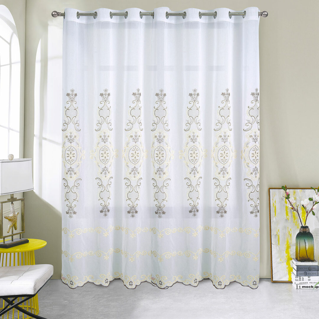 Voilage grande largeur MykonosIl se dégage comme un air de vacances avec notre superbe voilage aux différents coloris très doux.Un motif inspiré de la Méditerranée, le voilage est vaporeux et laissera transparaitre les premiers rayons du soleil dans votre intérieur. Elle sert également à atténuer la luminosité, elle peut être l'unique habillement de votre fenêtre, ou, si vous disposez de tringles à double barre, être associé à un rideau obscurcissant ou occultant si vous désirez bloquer toute lumière et regard extérieur la nuit tombé.Dimensions : 300x260Composition : polyester 100%Contient 1 voilage.