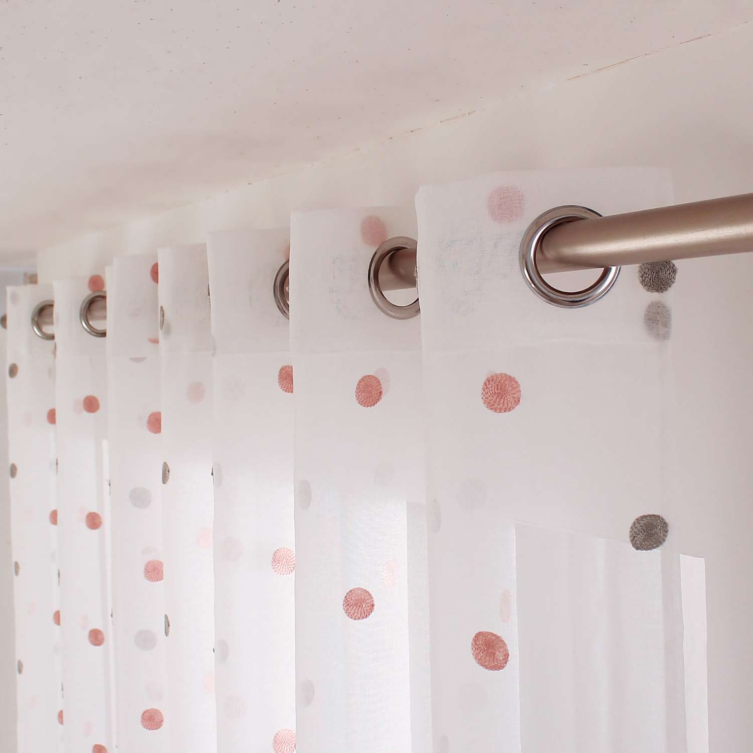 - Voilage en étamine brodé pois