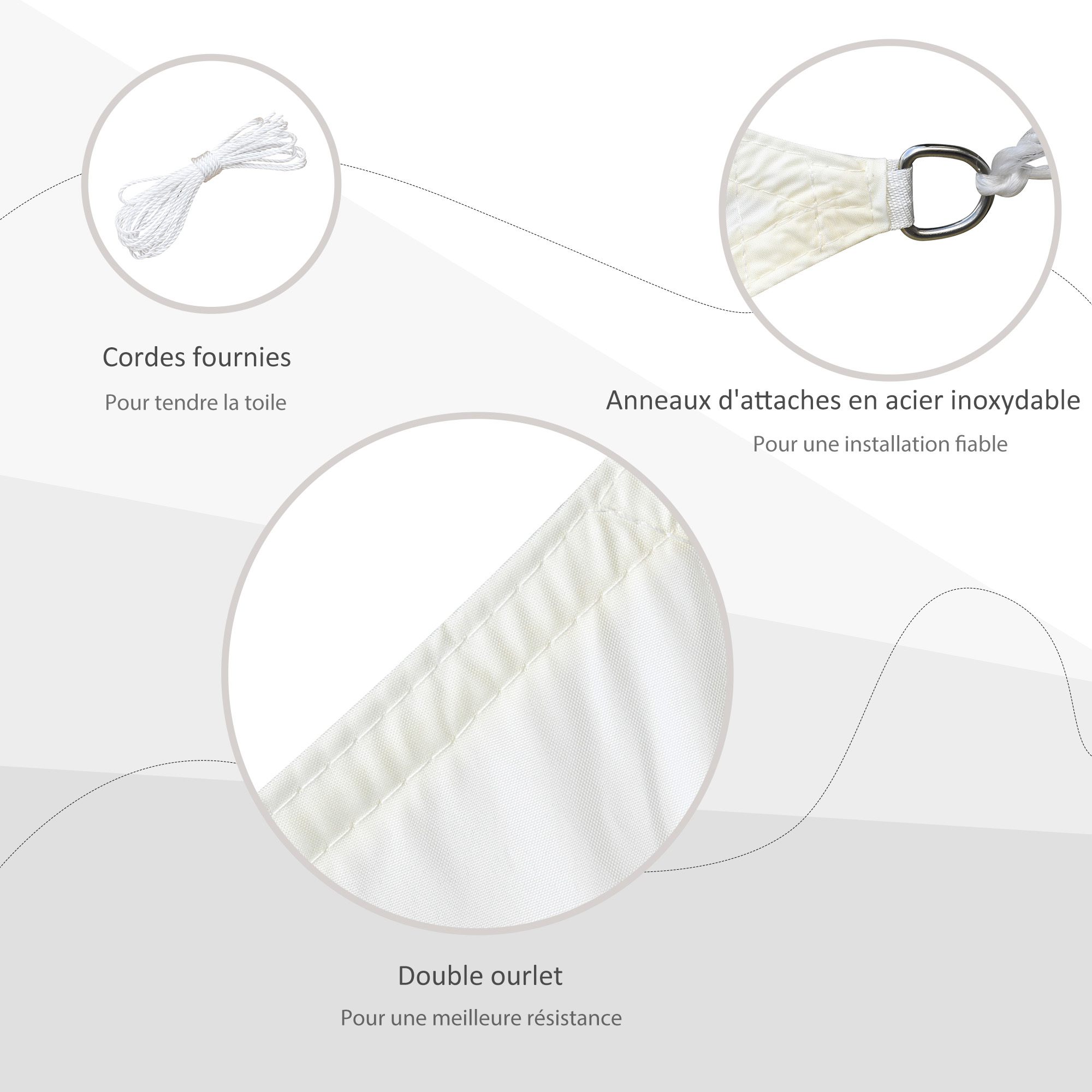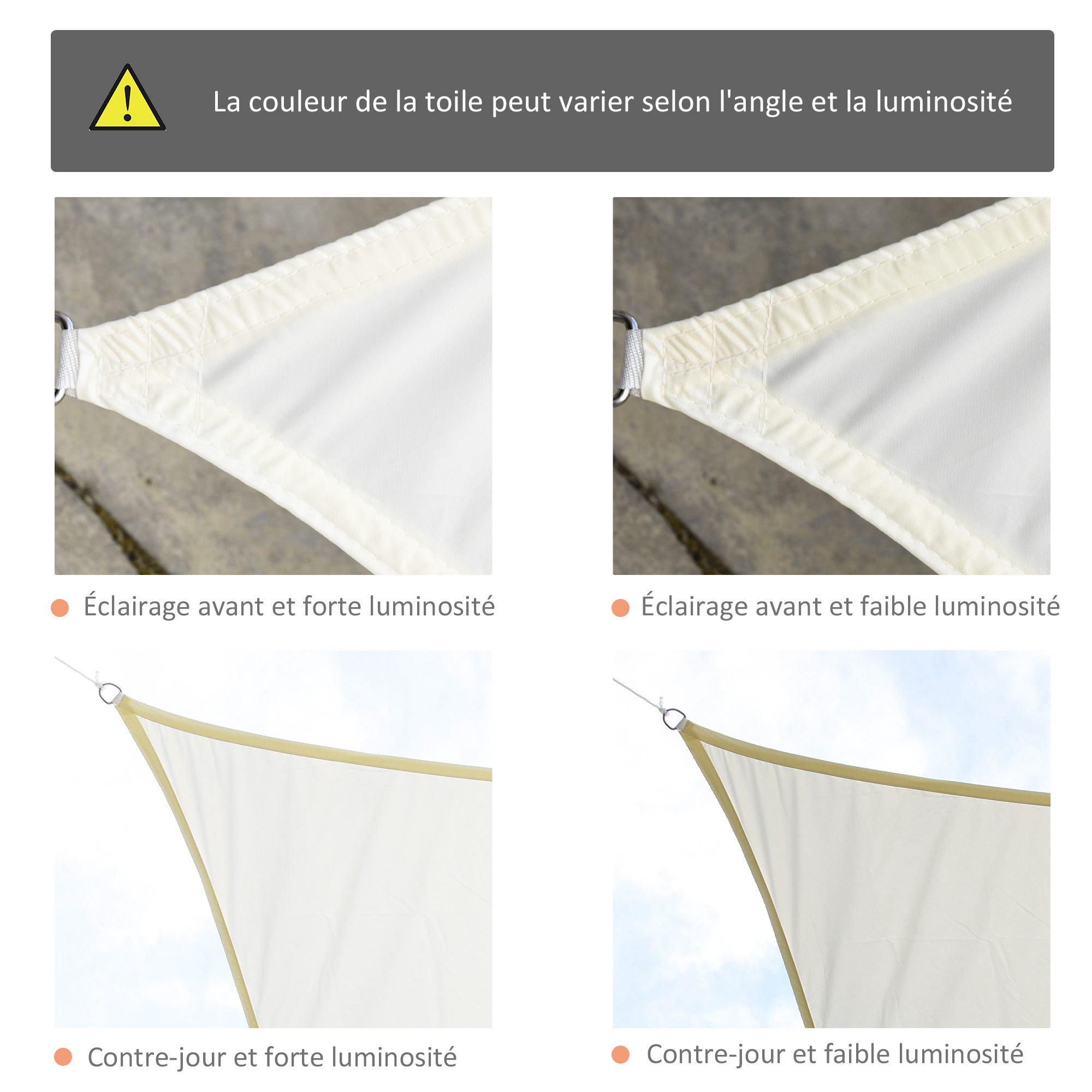 | Libellé | Voile d'ombrage carré 3 x 3 m polyester imperméabilisé haute densité 160 g/m² crème |