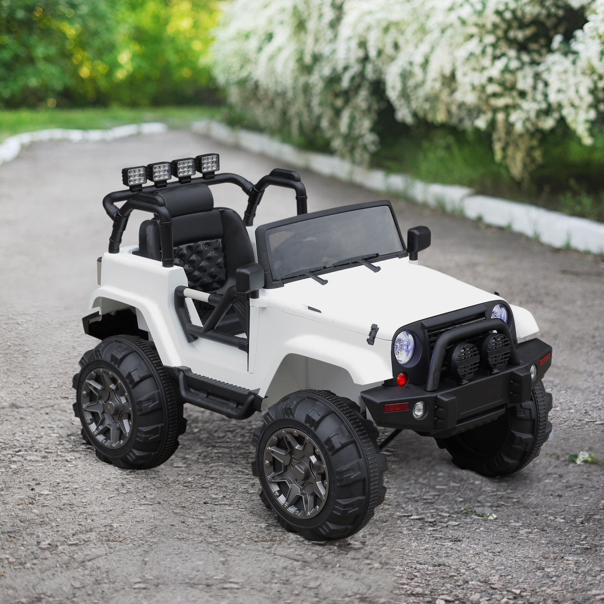 | Libellé | Voiture 4x4 électrique 12 V + télécommande 128L x 78l x 76H cm enfants 3 à 8 ans effets lumineux sonores lecteur MP3 blanc |