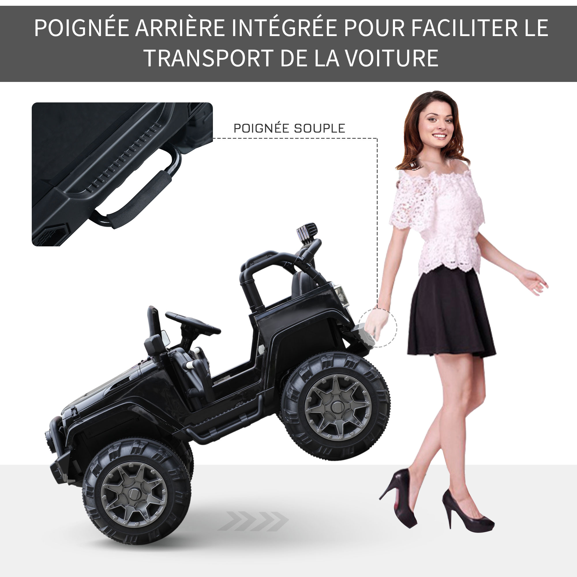 | Libellé | Voiture 4x4 électrique 12 V + télécommande 128L x 78l x 76H cm enfants 3 à 8 ans effets lumineux sonores lecteur MP3 noir |