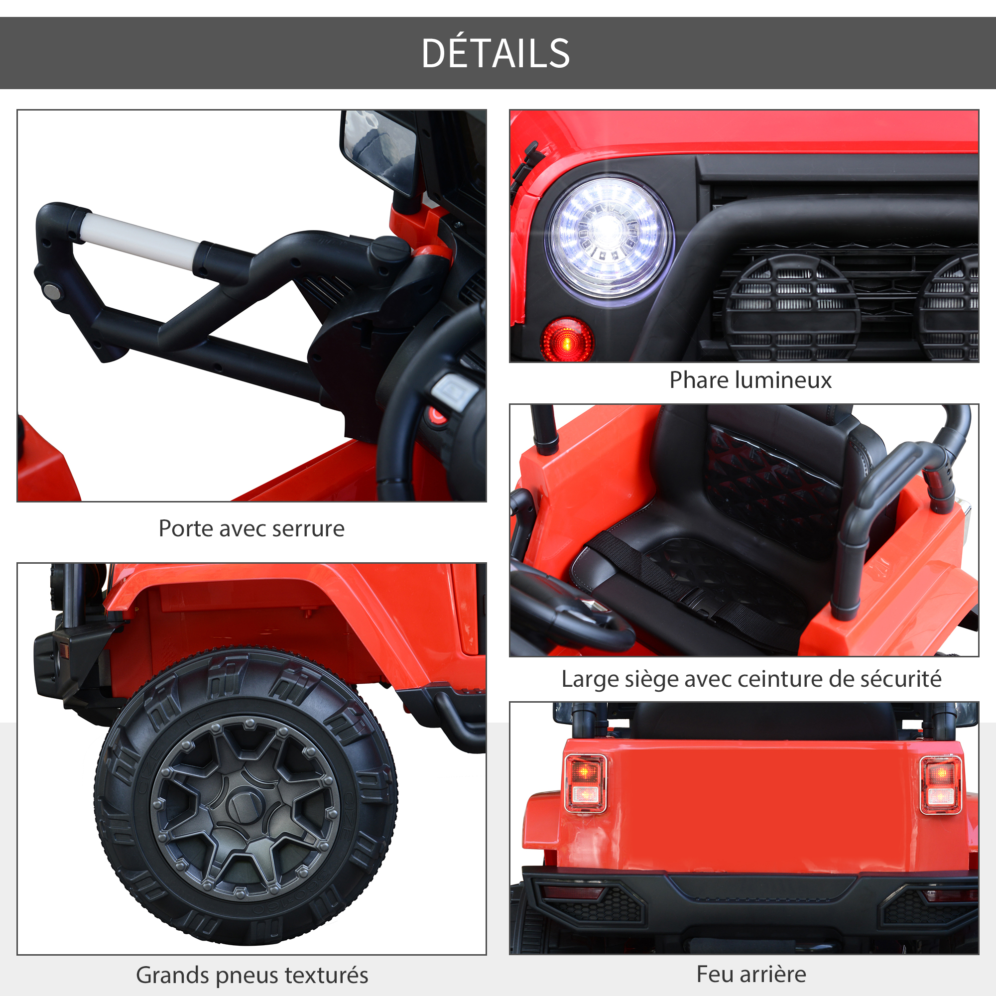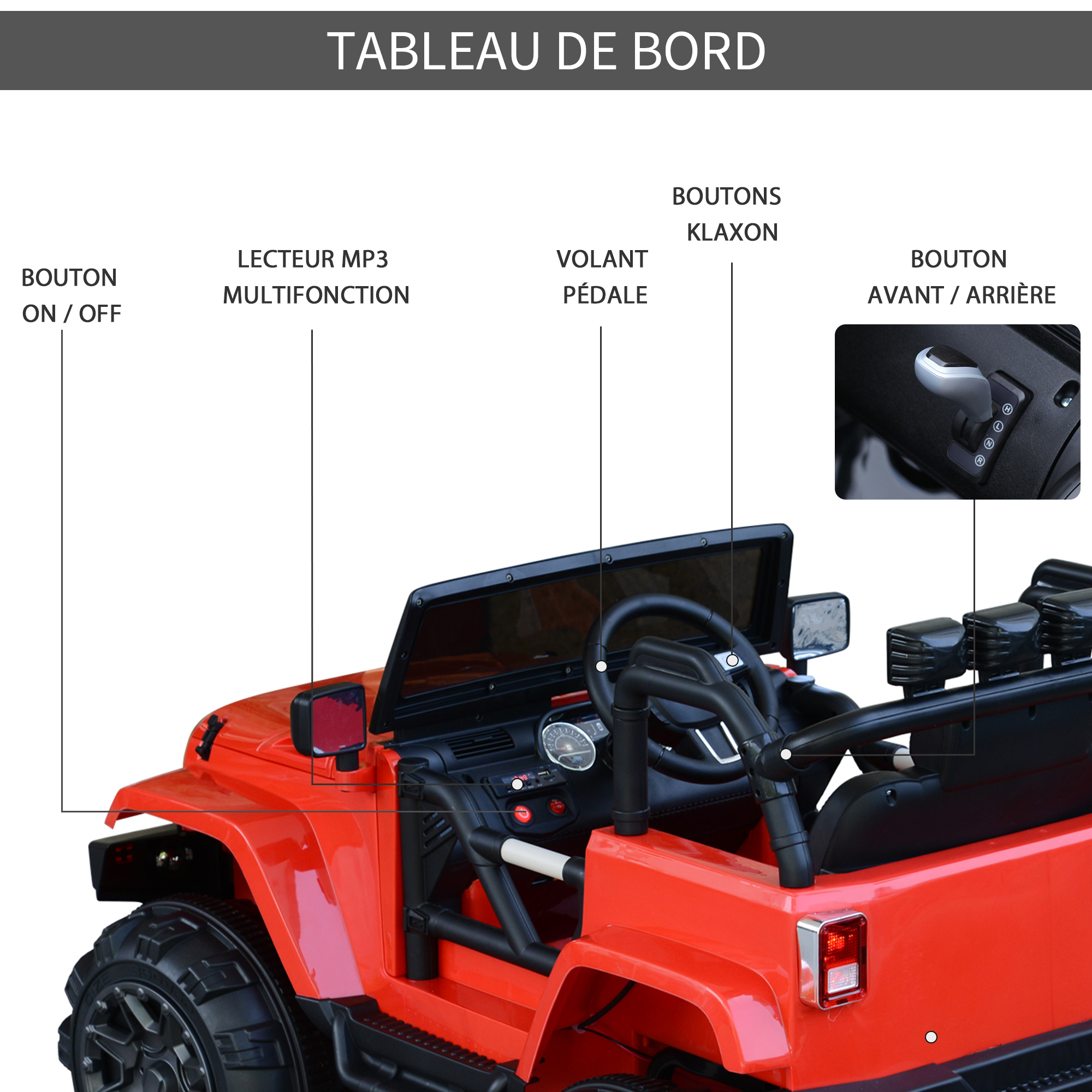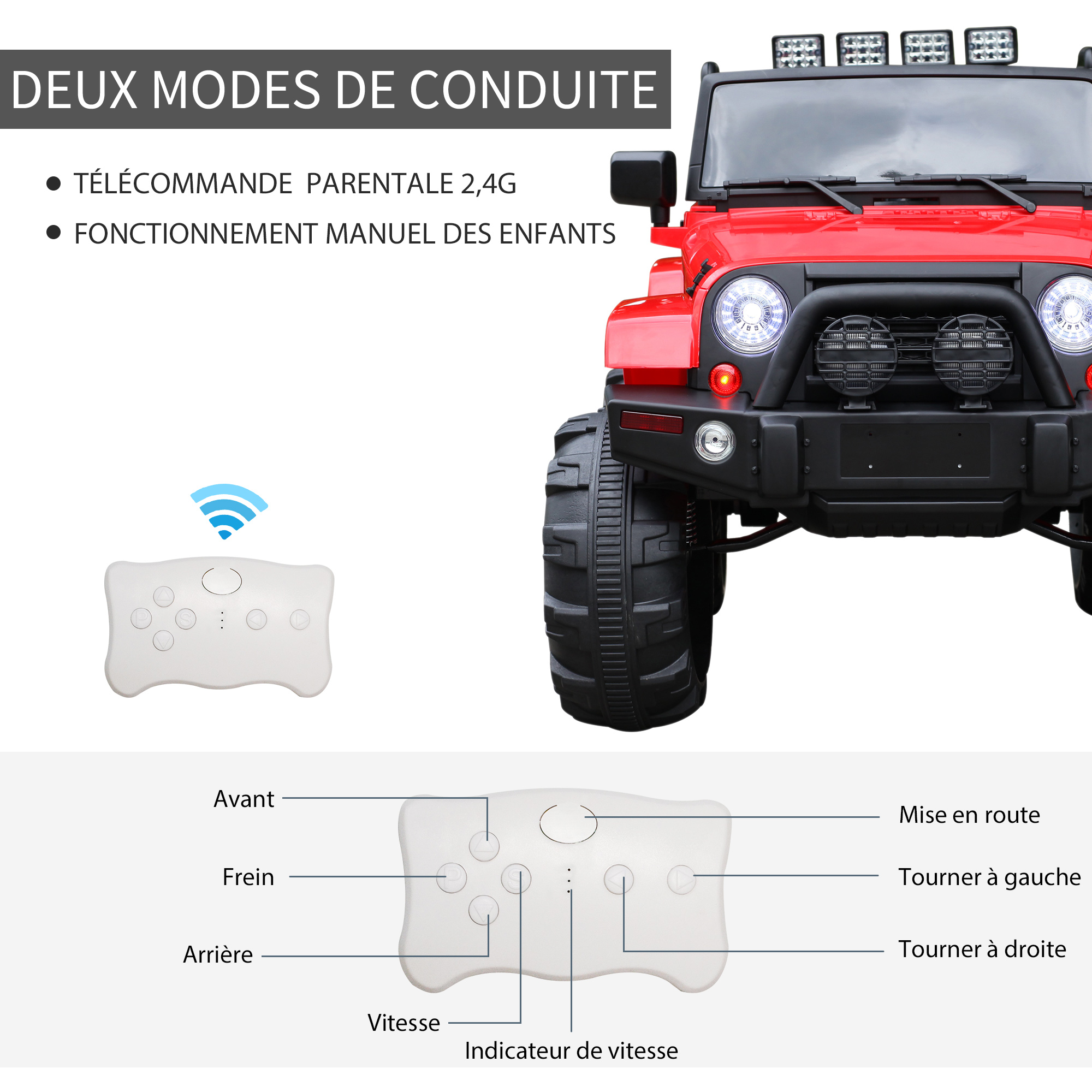| Libellé | Voiture 4x4 électrique 12 V + télécommande 128L x 78l x 76H cm enfants 3 à 8 ans effets lumineux sonores lecteur MP3 rouge |