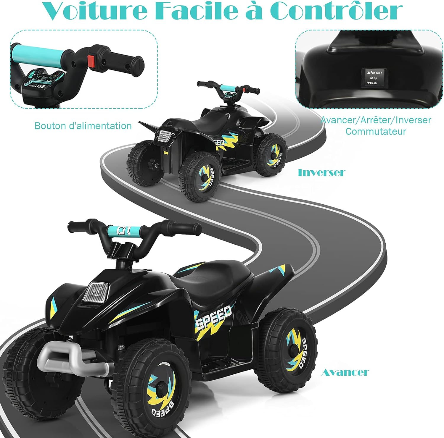 | Libellé | Voiture 4x4 quad buggy electrique,quad atv 6v marche arrière et frein électrique,avancer reculer,noir |