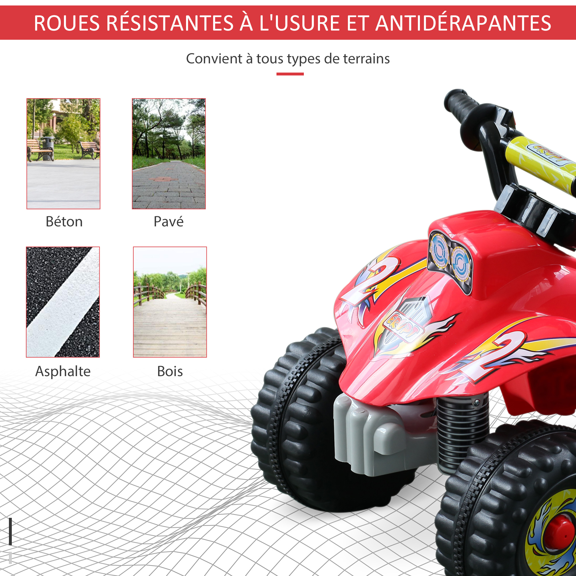 Voiture 4x4 quad électrique multifonctions 65L x 43l x 43H cm enfants 18 à 36 mois rouge et jaune