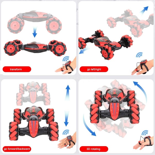 Voiture acrobatique télécommandée 2 en 1, télécommande ou bracelet manuel - Rouge