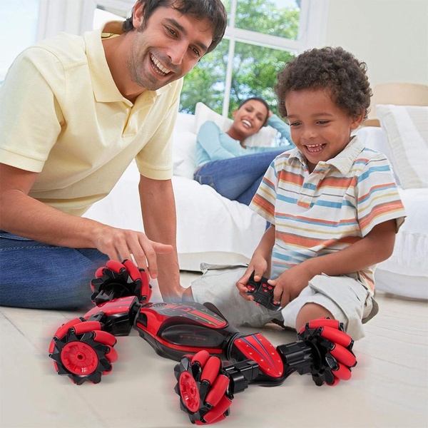 Cette voiture de cascades RC transformables mène à RC Fun à un niveau entièrement nouveau avec détection de gestes, de musique et de lumières colorées! Sur la route ou hors-jeu, les énormes roues gardent la carrosserie de la voiture stable qui pourrait être affectée par des manœuvres hors route et une vitesse incroyable. La puissante batterie de 7,4 V 1300mAh aide la voiture à atteindre un temps de travail plus long jusqu'à 40 minutes, répondant parfaitement à ses besoins de lecture. Surprenant! Profitez de chaque moment passionnant de conduite. Deux modes de contrôle: un mode consiste à mettre le bracelet dans votre main et à contrôler la voiture avec des cascades, l'autre consiste à utiliser la télécommande pour conduire comme vous le souhaitez. Cette voiture amène son propriétaire à un nouveau niveau de plaisir en RC. Système radio 2,4 GHz, distance de contrôle de 100 mètres. Des lumières colorées et de la musique joyeuse: cette nouvelle version de la voiture RC offrira à vos enfants une expérience de conduite pour enfants, élégante et spéciale. Le corps transformable rend la voiture plus flexible et adaptée à tous les terres. Il se déplace dans le sable, les pierres, les routes accidentées et autres terres. Comme la voiture a une conception exclusive de l'avant et du verset, elle peut être tournée et guidée par les deux côtés. Si vous trouvez des obstacles, la voiture inverse l'équipement et peut continuer à conduire après l'emballage sur le mur. Fabriqué en métal et en plastique, il a une résistance et une pression. Convient pour circuler sur n'importe quel sol. Cliquez simplement sur le bouton de commande à distance, votre corps doublera, les quatre roues seront plus serrées et seront stables. La voiture se déplacera catégoriquement vers un véhicule tout-terrain. Convient aux environnements internes et externes: une puissance forte, une vitesse élevée de 25 km / h, peut fonctionner parfaitement sur diverses surfaces d'environnements internes et externes.