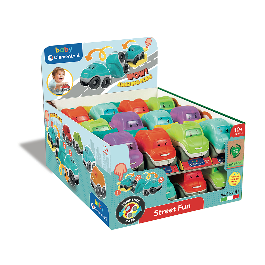 La boîte contient Un display contenant 24 voiturettes avec leur socle de culbute.