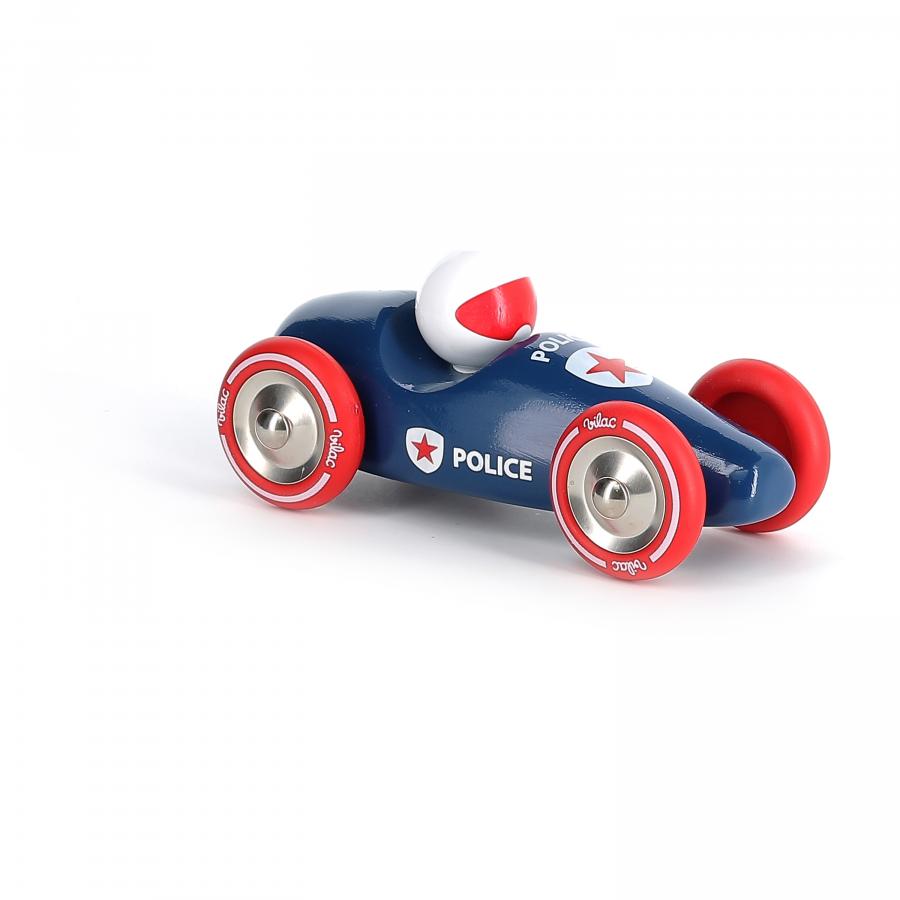 Haut les mains ! Cette voiture de course grand modèle aux couleurs de la police est un incontournable dans la collection Vilac.