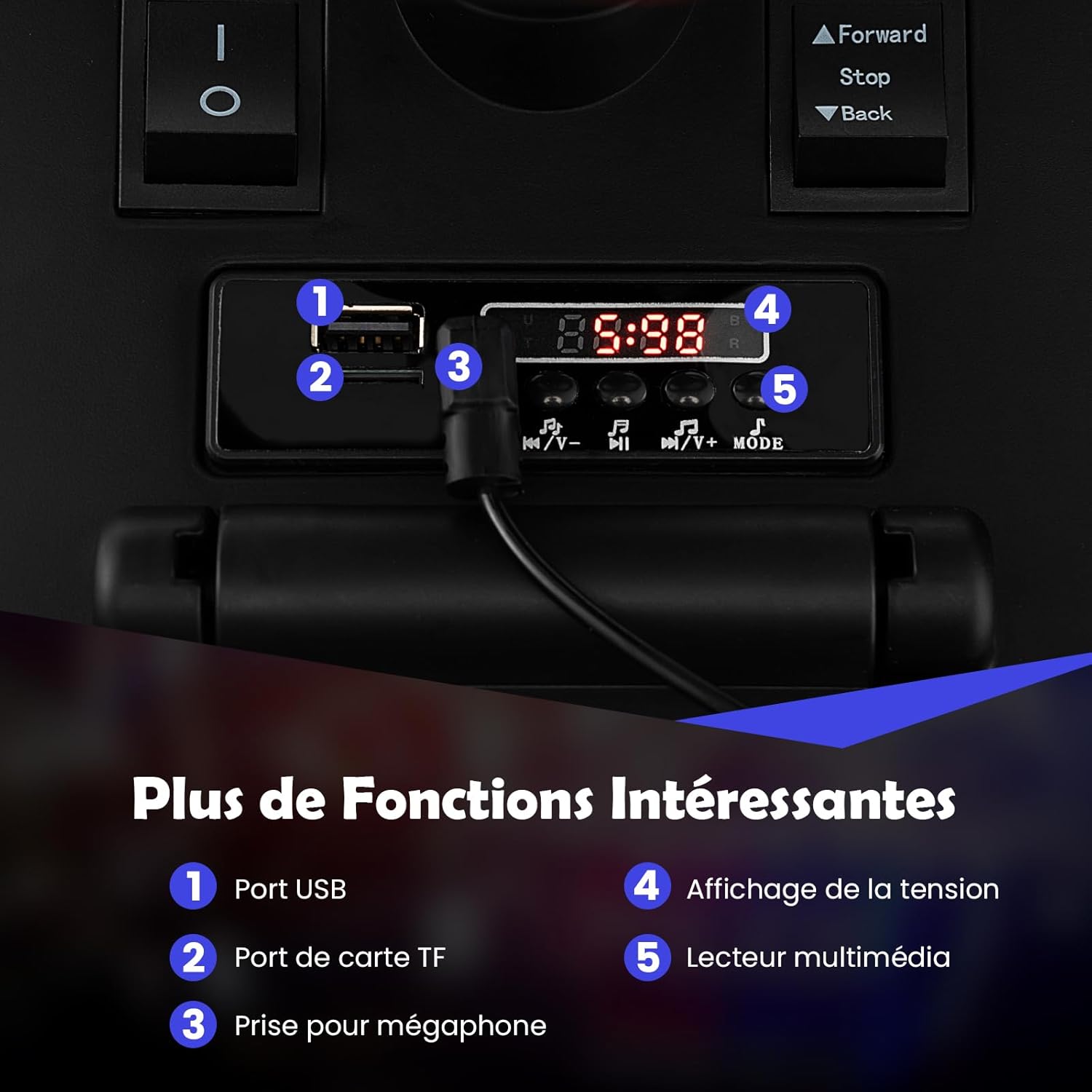 Prise USB et port de carte TF disponibles pour jouer de la musique