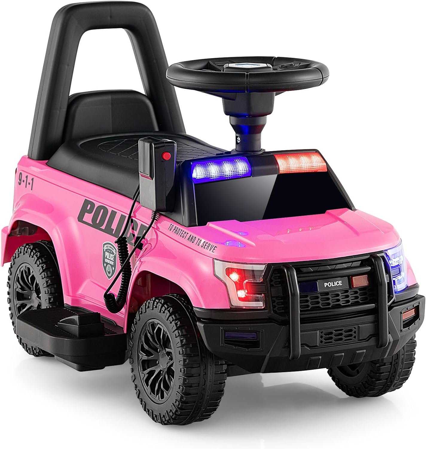 Voiture de police électrique enfants voiture électrique à batterie de 6v mégaphone sirène lumières,rose