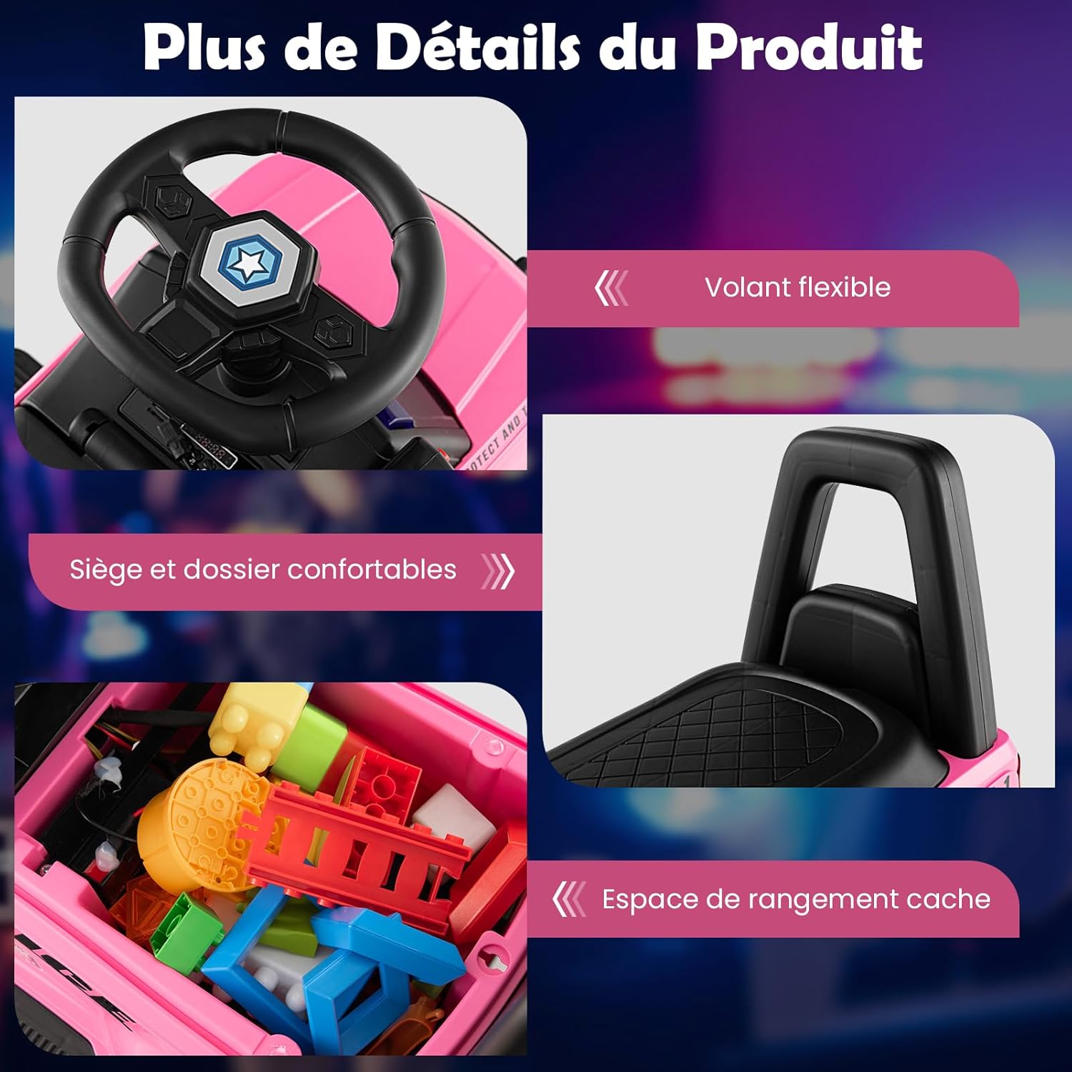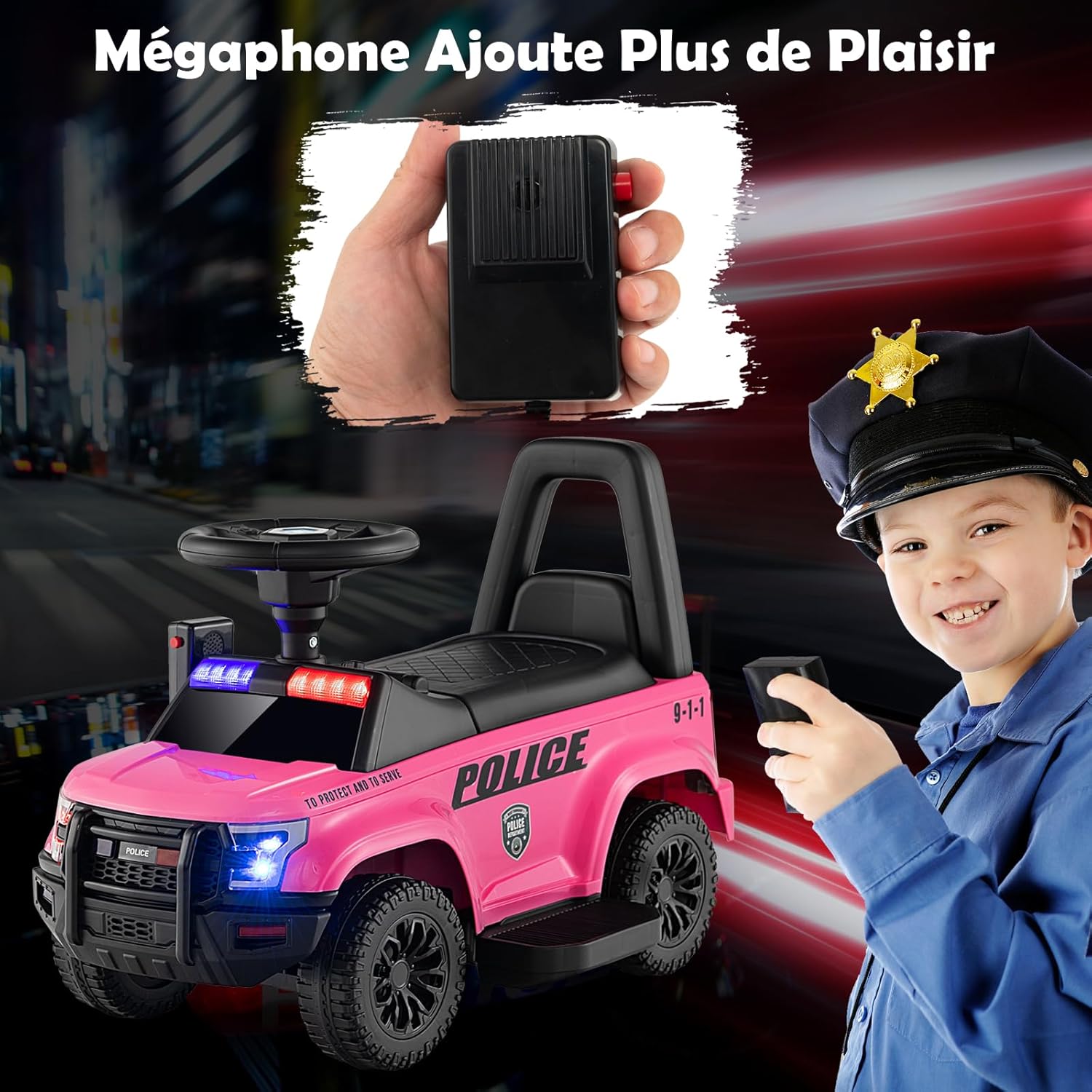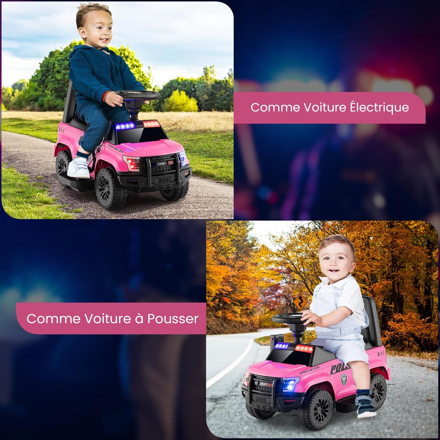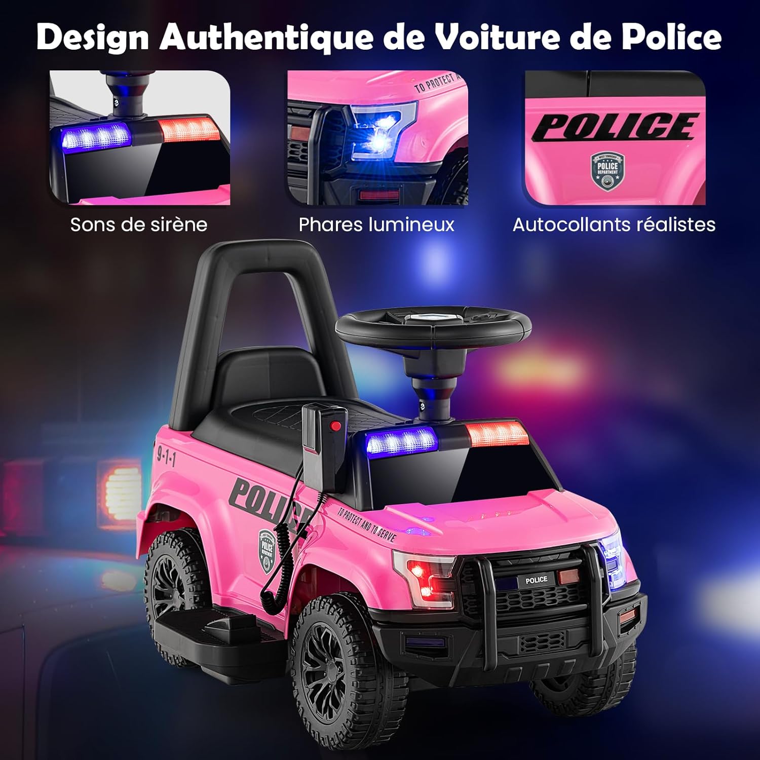 | Libellé | Voiture de police électrique enfants voiture électrique à batterie de 6v mégaphone sirène lumières,rose |