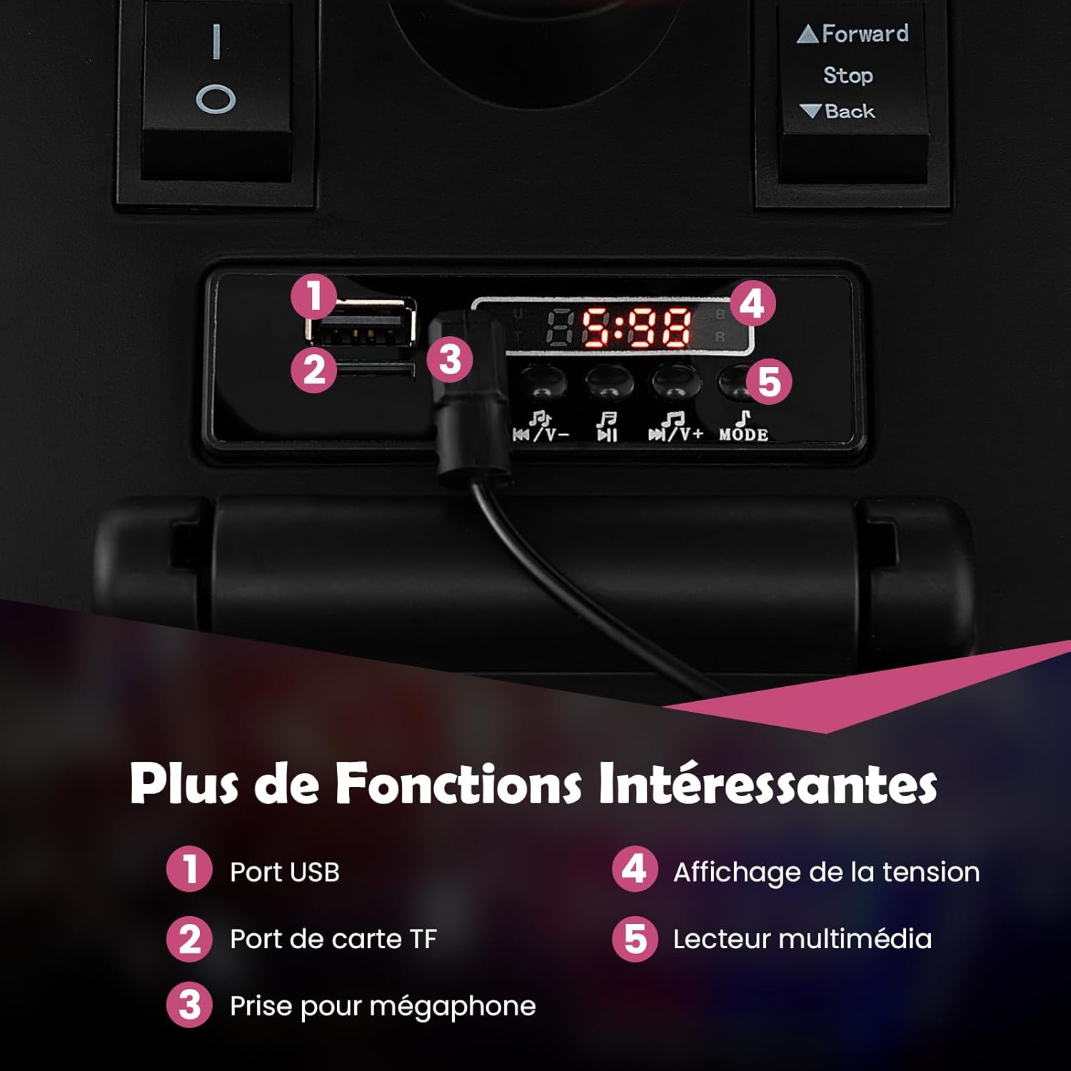 - Nombreuses Fonctionnalités Intéressantes : Cette voiture de police électrique pour enfants est livrée avec un véritable mégaphone qui permet à vos enfants de réaliser leur rêve de devenir policier. De plus, il y a un port USB et un port de carte TF, permettant à votre petit de jouer sa musique préférée. De plus, l'affichage de la tension peut clairement montrer l'état actuel de la batterie.