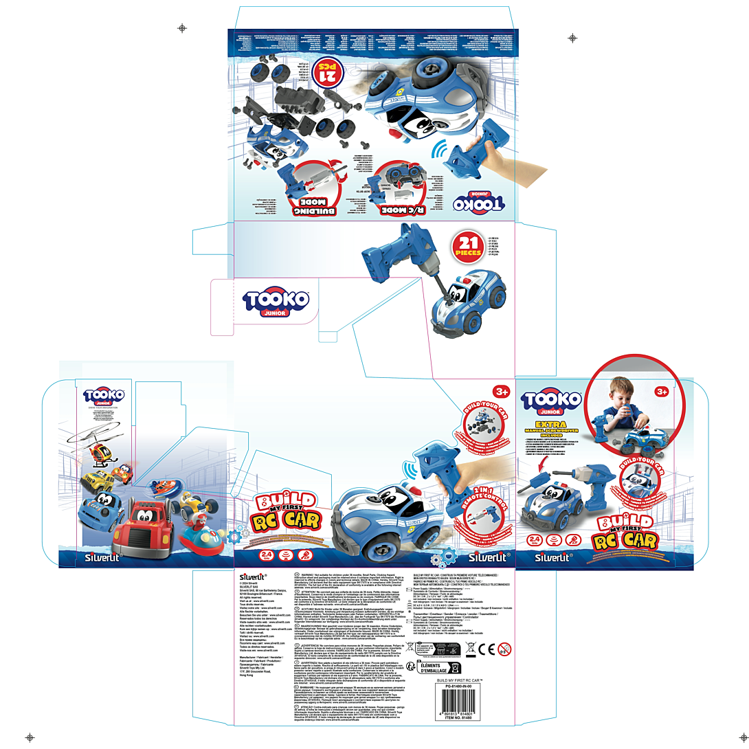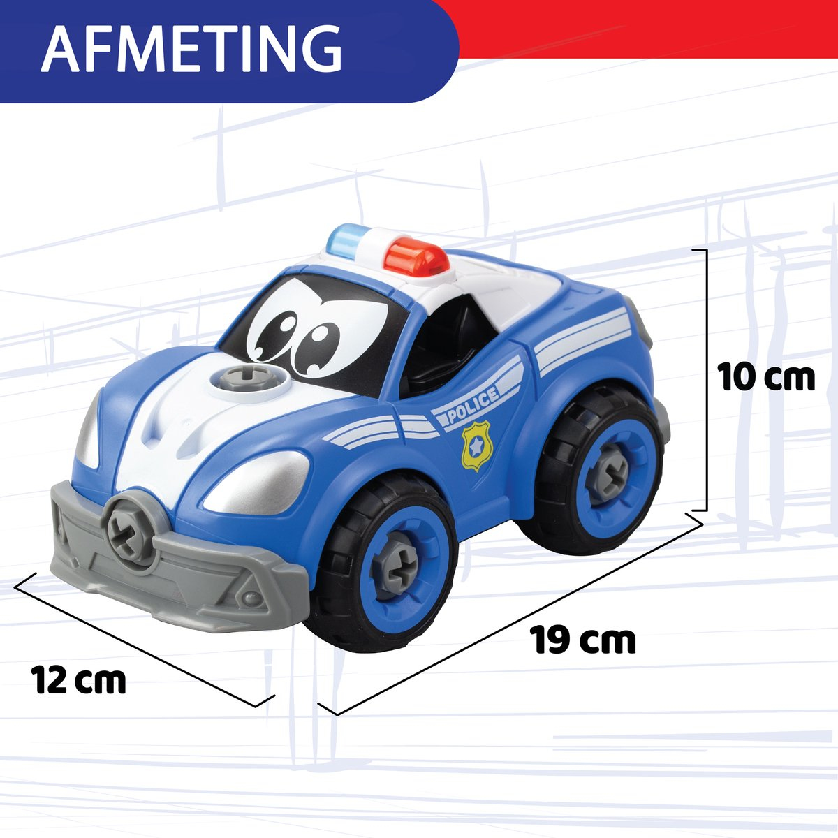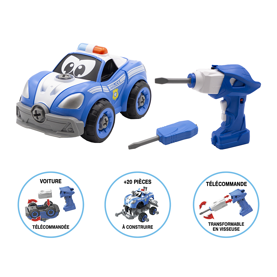TOOKO - Construis ma voiture de police RC. Avant de prendre la route, n’oublie pas de vérifier ta voiture ! Grâce à cette voiture au look policier, votre enfant fera comme les vrais mécanos. Avec plus de 22 pièces à construire et sa technologie 2,4Ghz, ce véhicule à construire sortira tout droit du garage pour foncer à toute vitesse ! A partir de 3 ans. Fonctionne avec 2 piles "AA" (véhicule) et 2 piles "AA" (télécommande) non incluses.