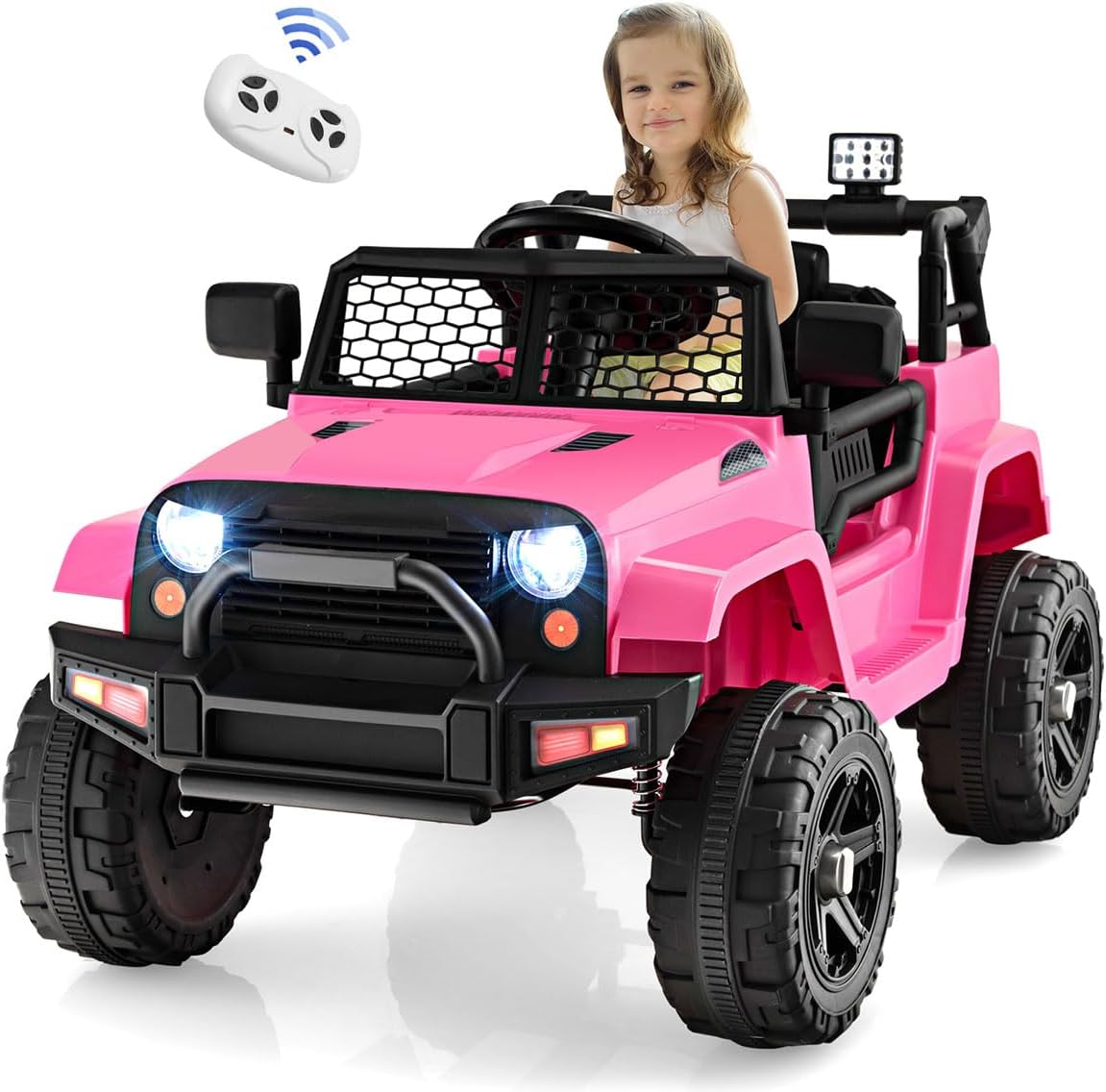 Voiture electrique enfant 12v télécommande 2,4g, quad 4x4 electrique enfants avec klaxon et musique rose