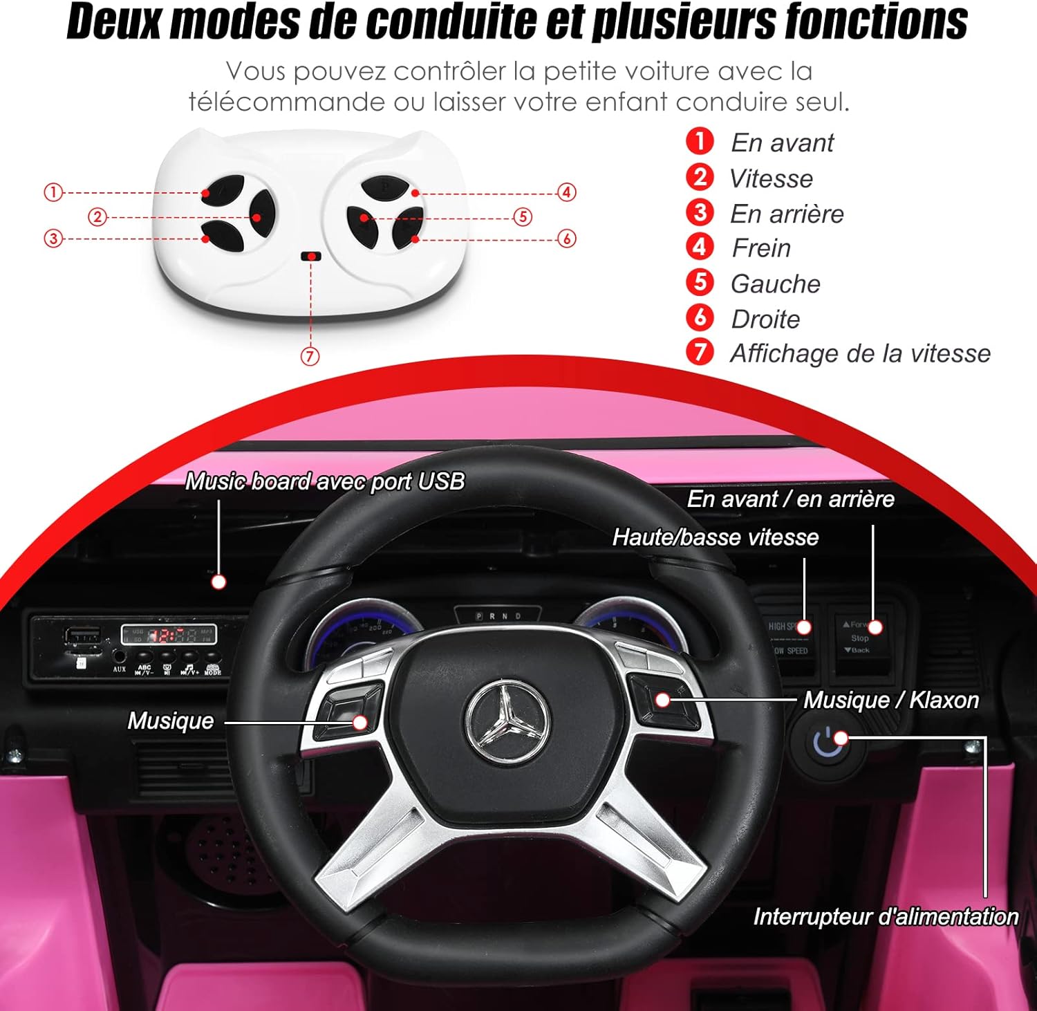 Voiture electrique enfants 2 place 12v avec télécommande 2,4g mercedes g650 2 vitesses et démarrage frein