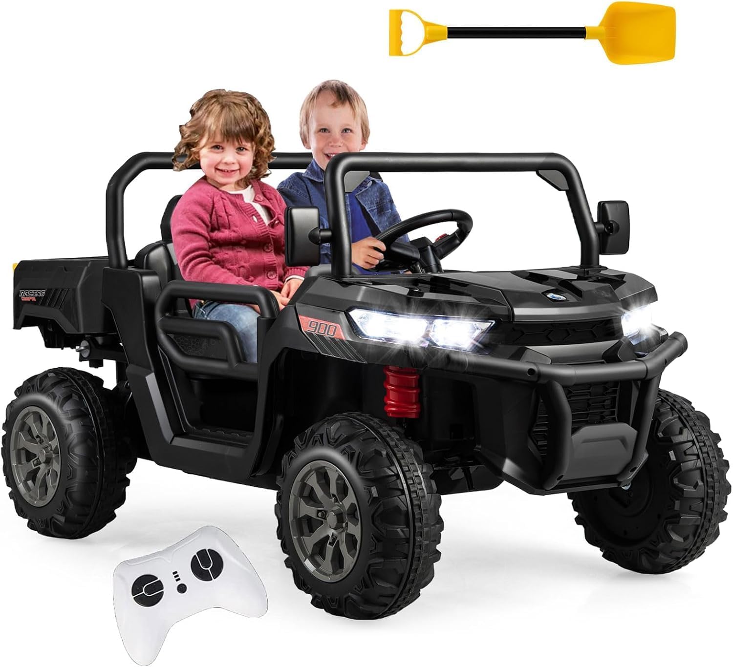 Voiture electrique enfants 2 place avec télécommande 2,4g, tracteur electrique enfants 12v démarrage noir