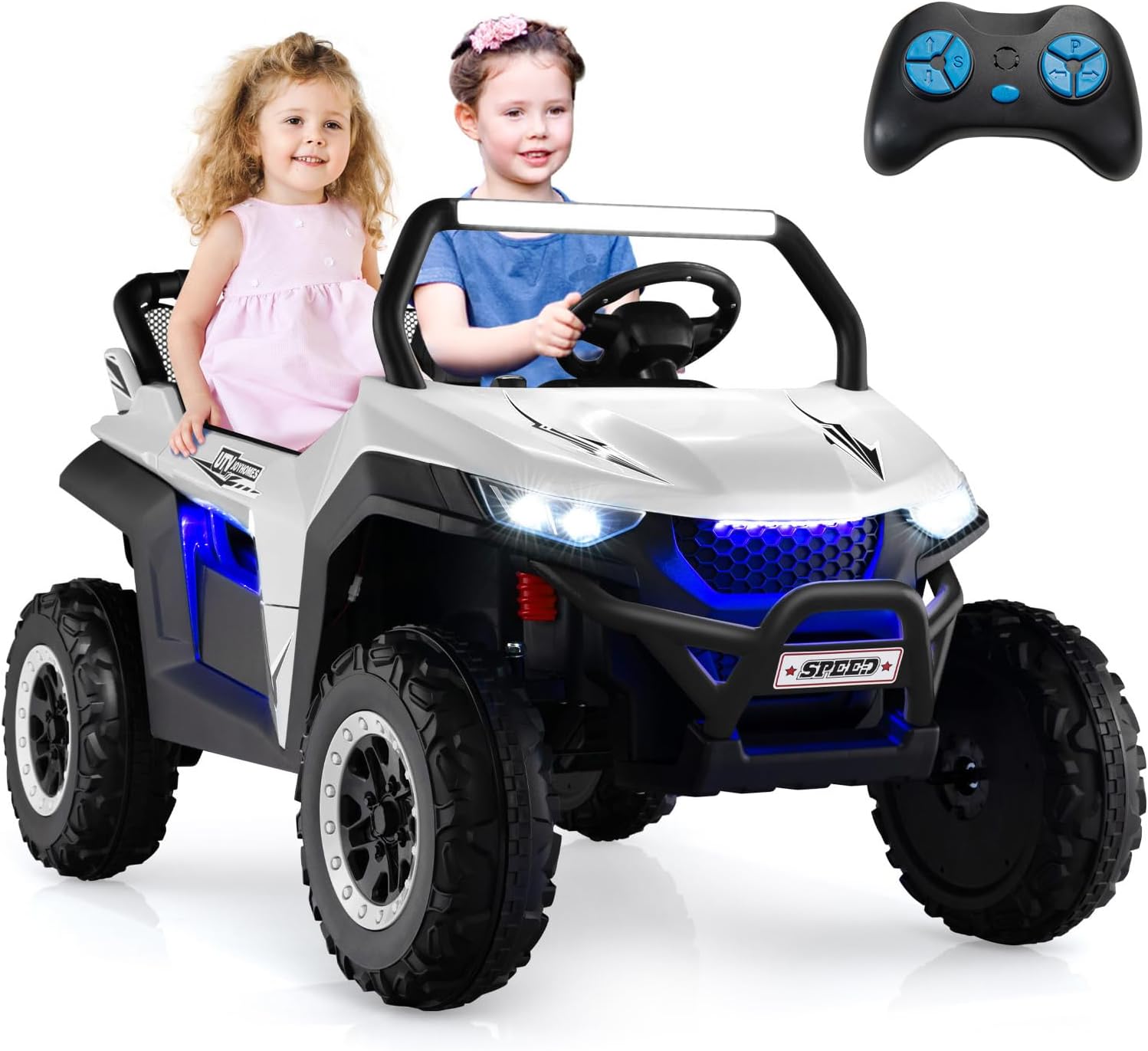 Voiture electrique enfants 2 place télécommande 2,4g lumières musique quad 4x4 electrique enfants blanc