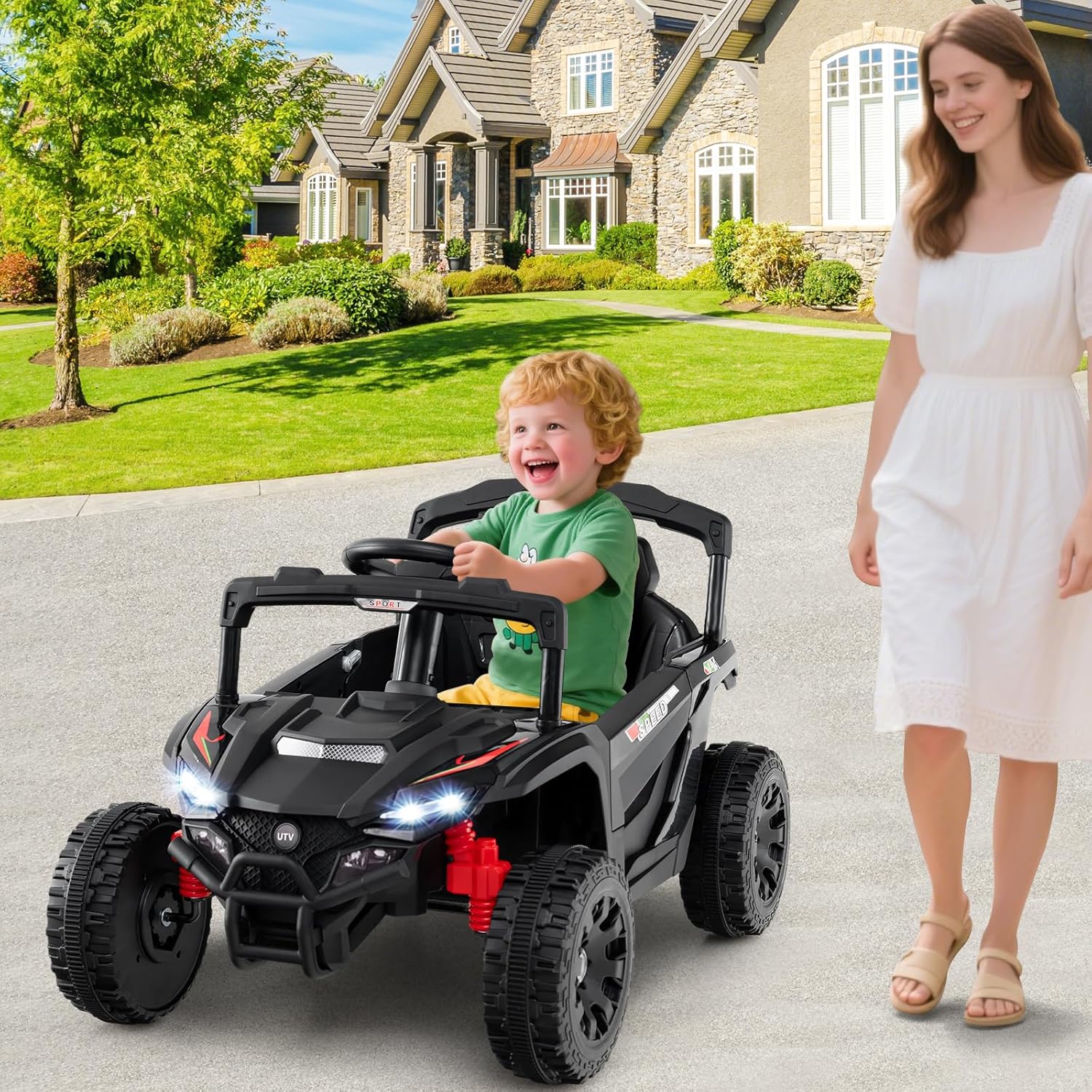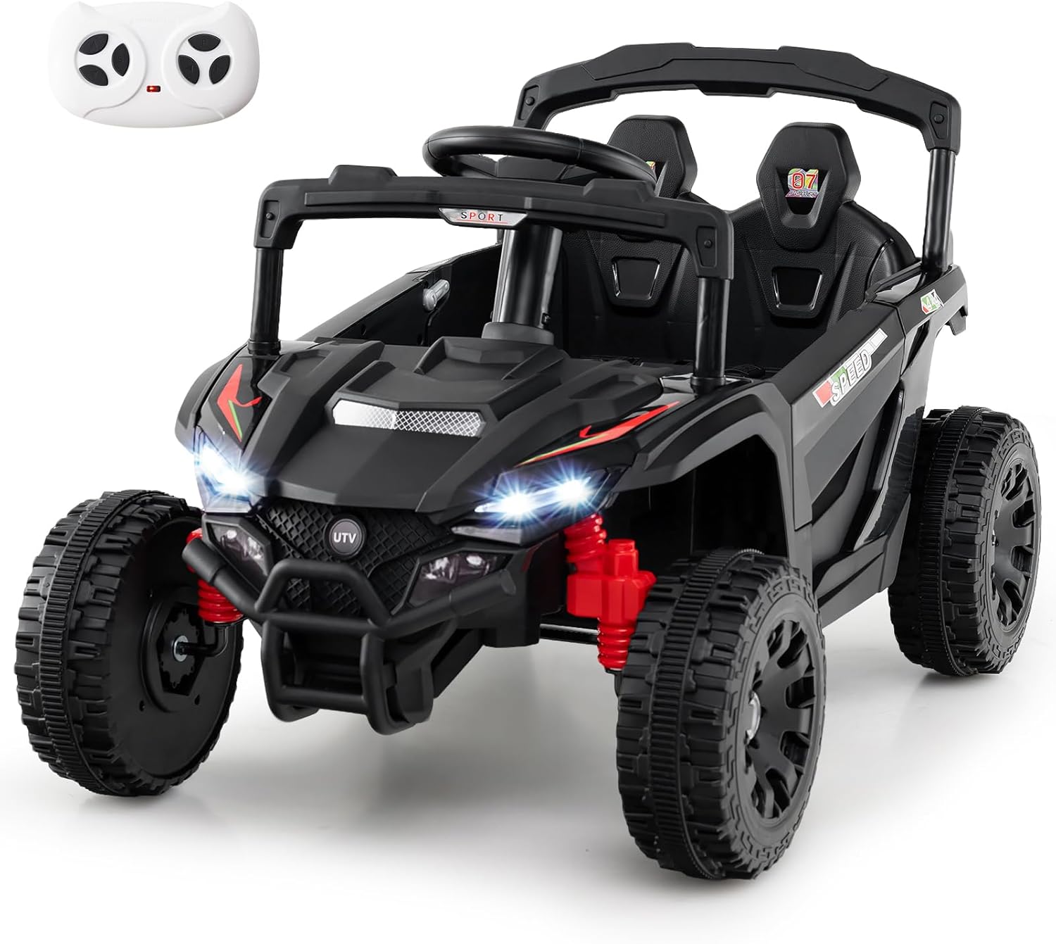 - Garantie de performance de sécurité : Pour plus de sécurité, cette voiture électrique pour enfants est équipée d'un démarrage/arrêt progressif et d'amortisseurs arrière. Les ceintures de sécurité à deux points maintiennent les enfants bien en place. Les portes sont verrouillables pour garantir leur sécurité.