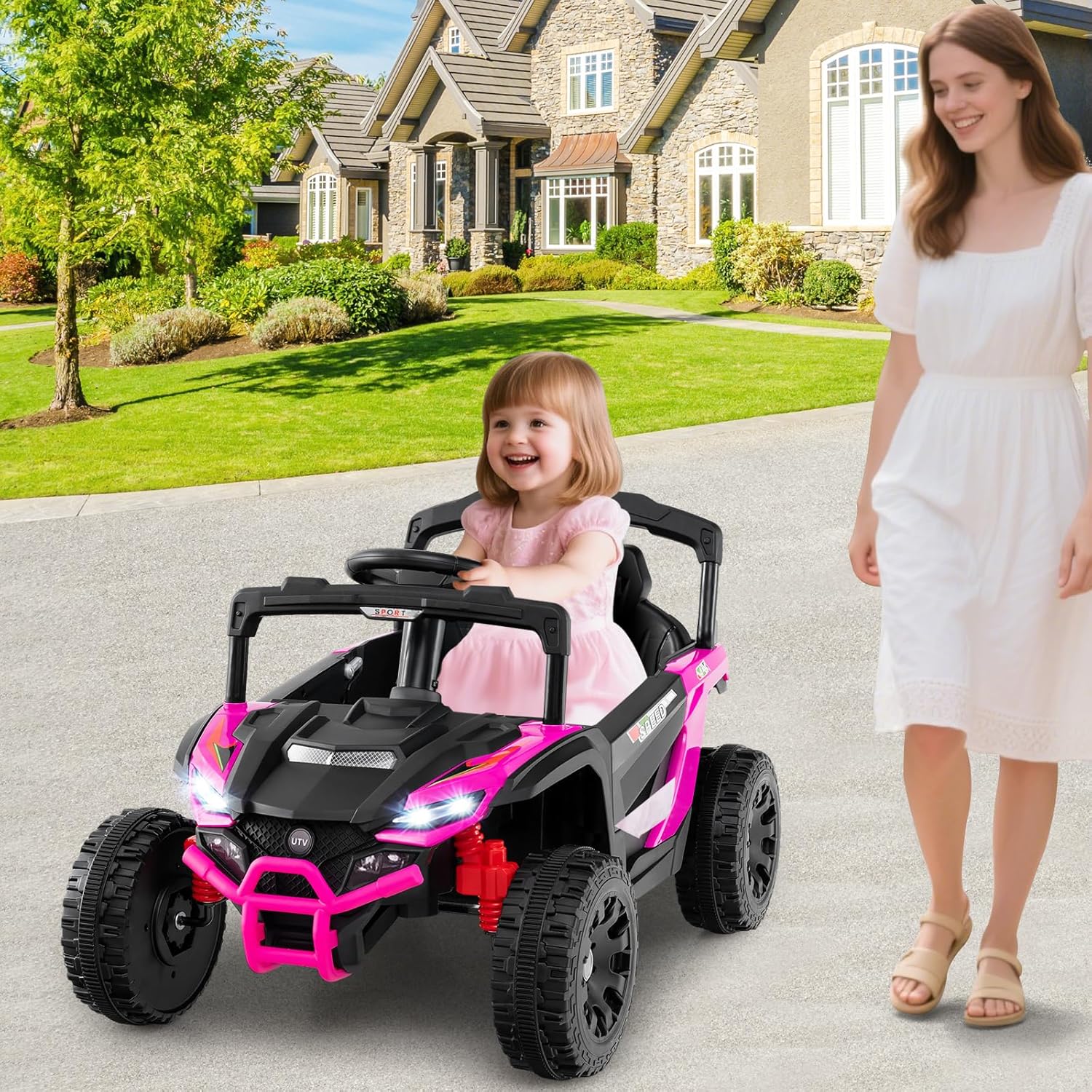 - Garantie de performance de sécurité : Pour plus de sécurité, cette voiture électrique pour enfants est équipée d'un démarrage/arrêt progressif et d'amortisseurs arrière. Les ceintures de sécurité à deux points maintiennent les enfants bien en place. Les portes sont verrouillables pour garantir leur sécurité.