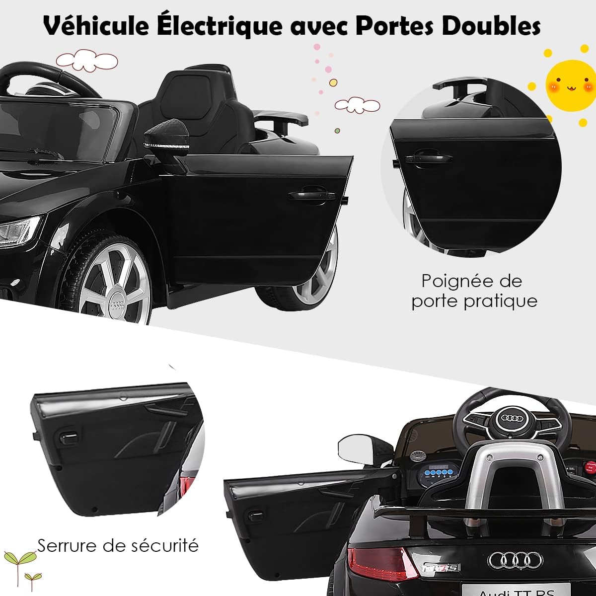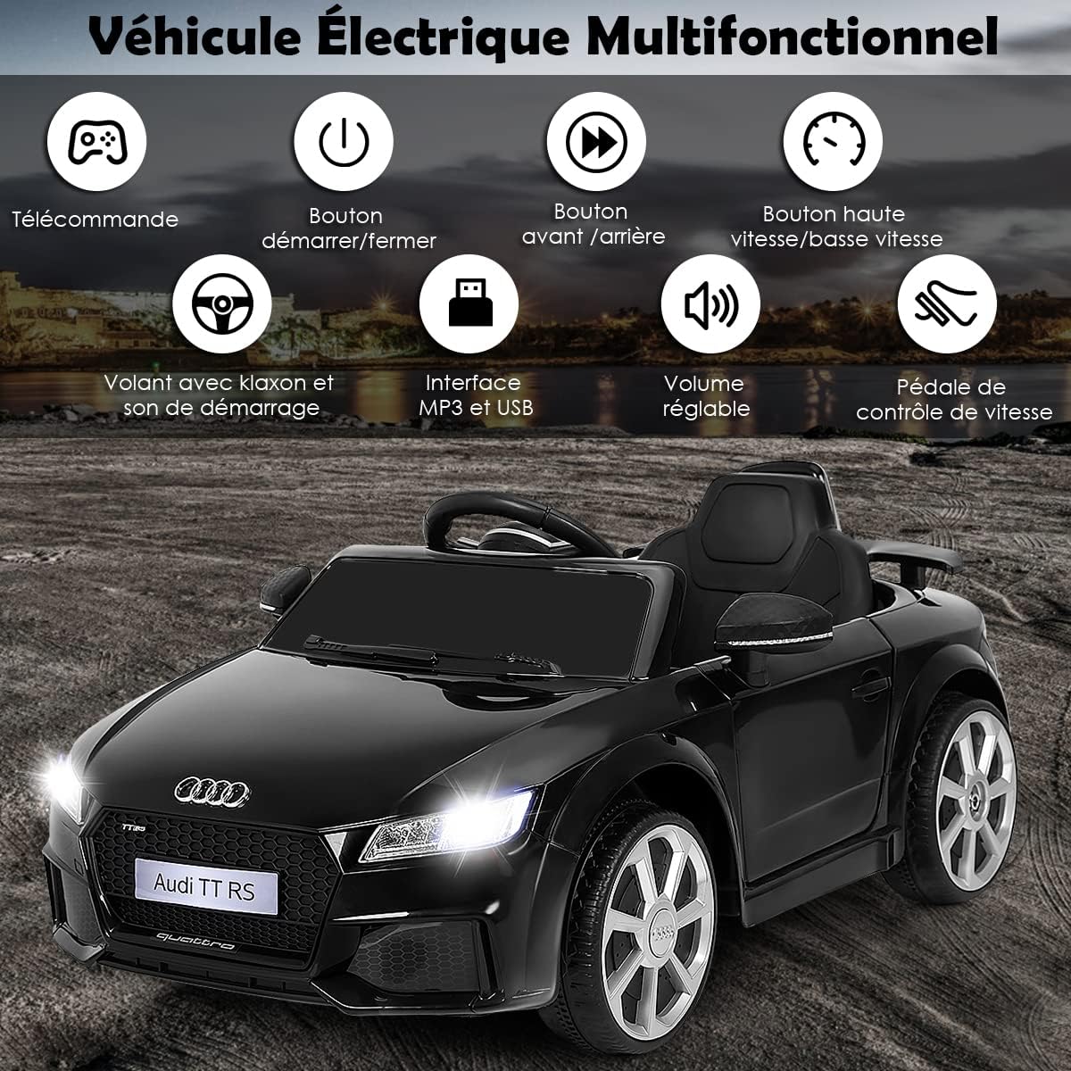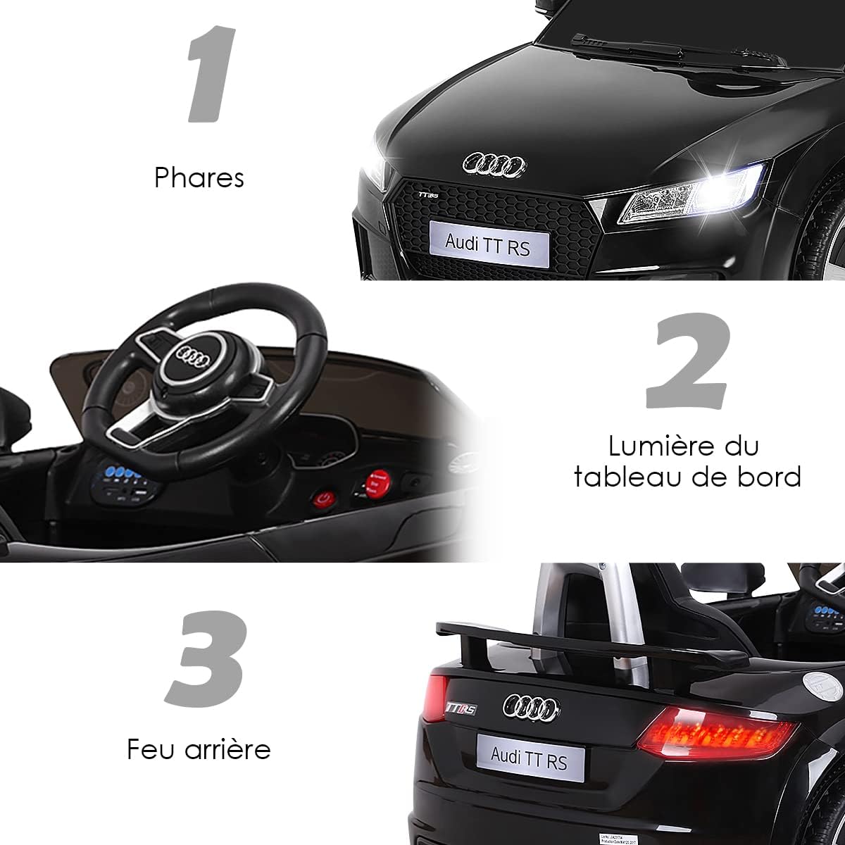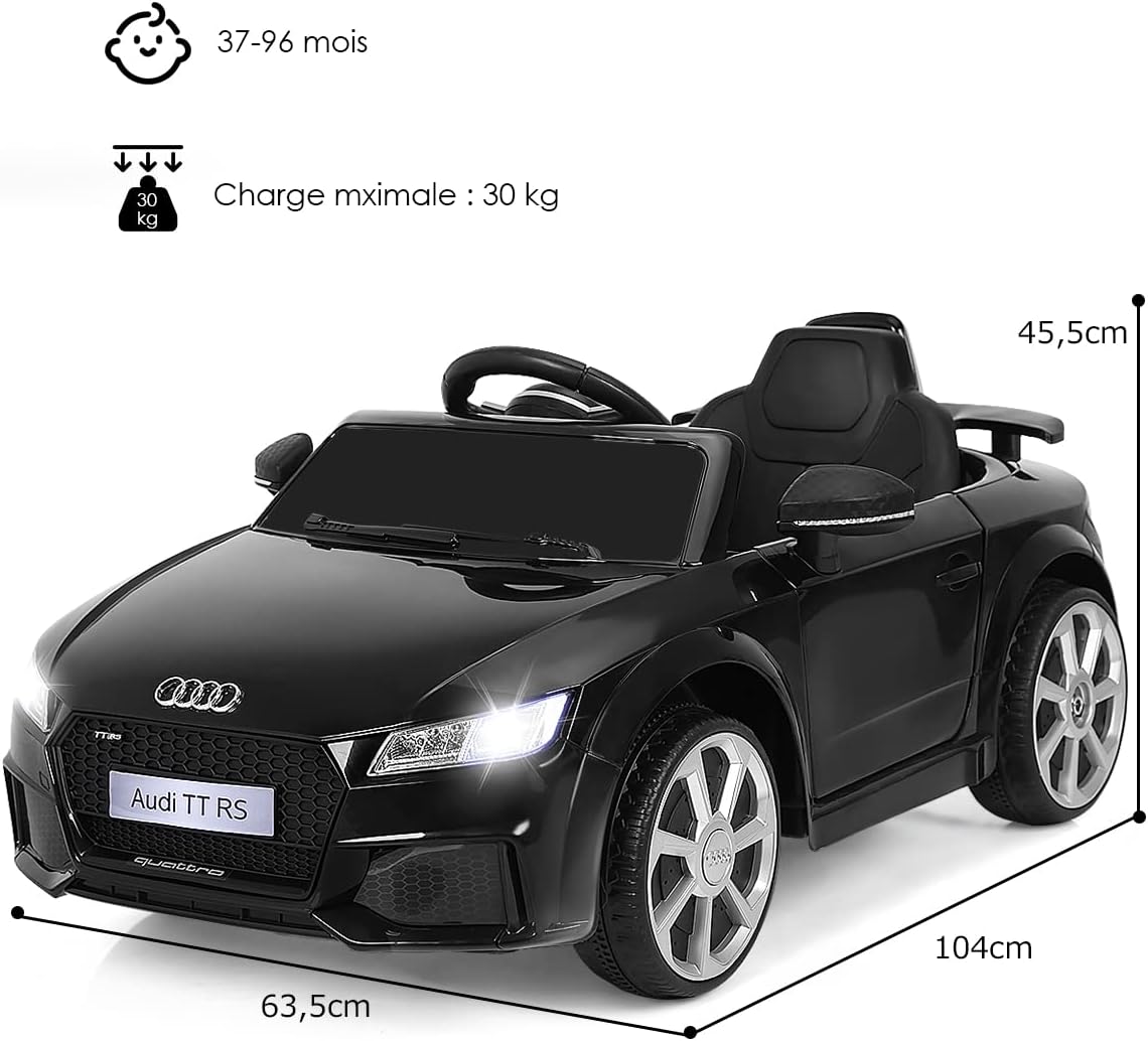 | Libellé | Voiture électrique pour enfants audi tt rs, klaxon, musique, phares led, pousser, télécommande 2.4g noir |